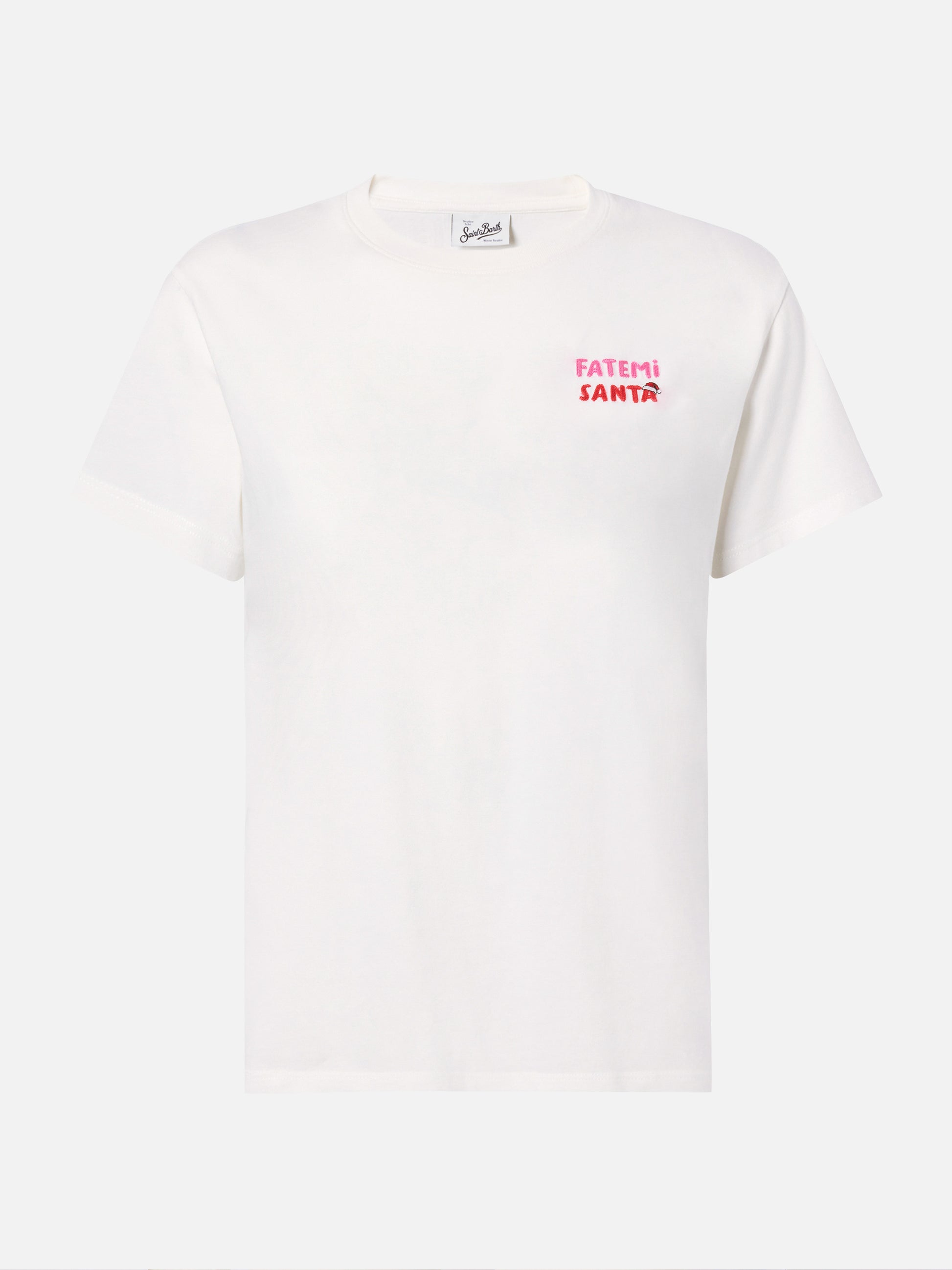 T-shirt Emilie in cotone bianco con ricamo Fatemi Santa