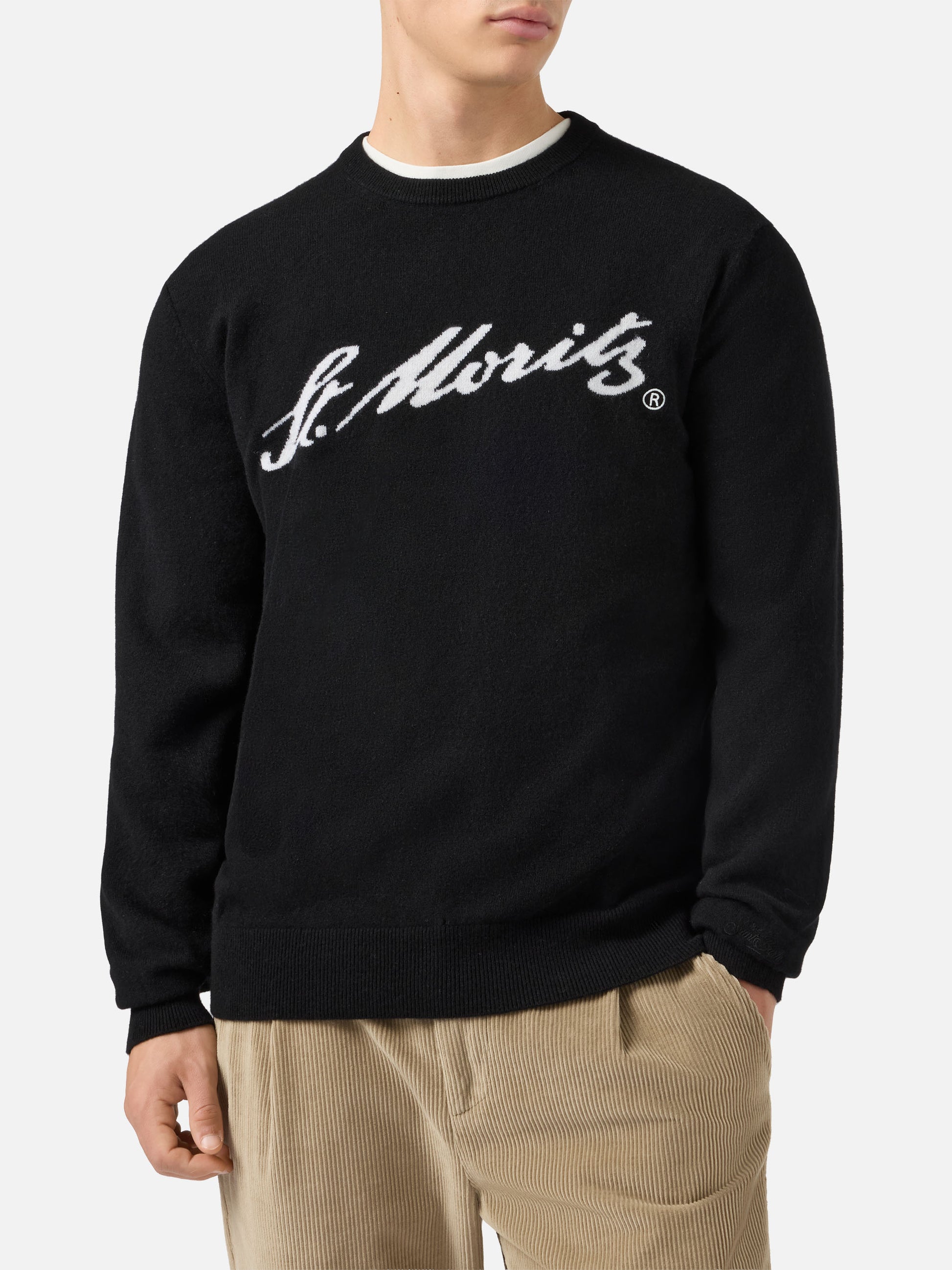 Maglione Heron Light in 100% CASHMERE nero con intarsio St. Moritz | ST. MORITZ TOP OF THE WORLD