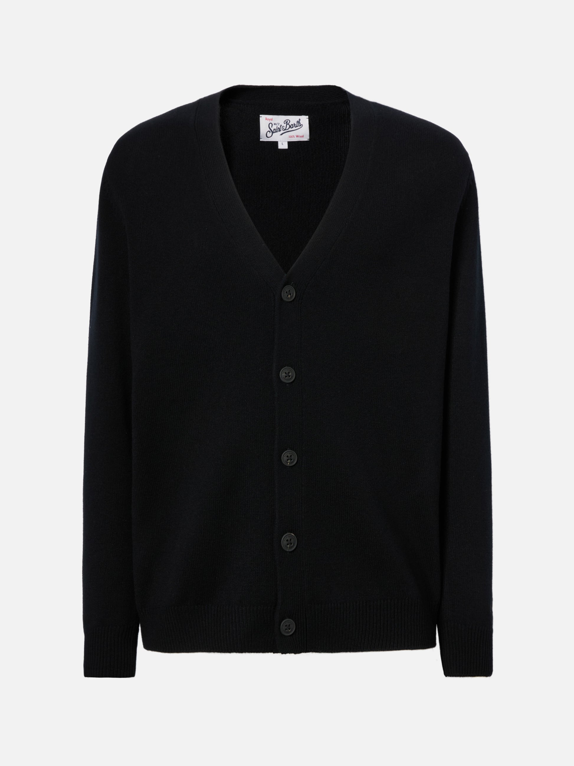 Cardigan Herrison in pura lana nero a coste inglesi