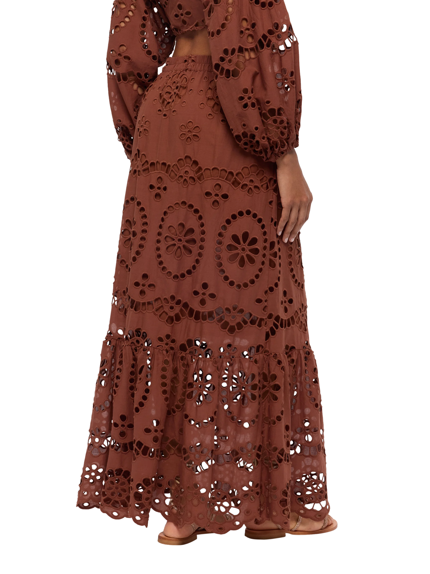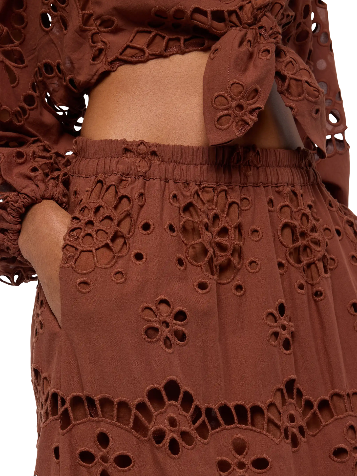 Gonna in Sangallo di cotone marrone cammello Jenny