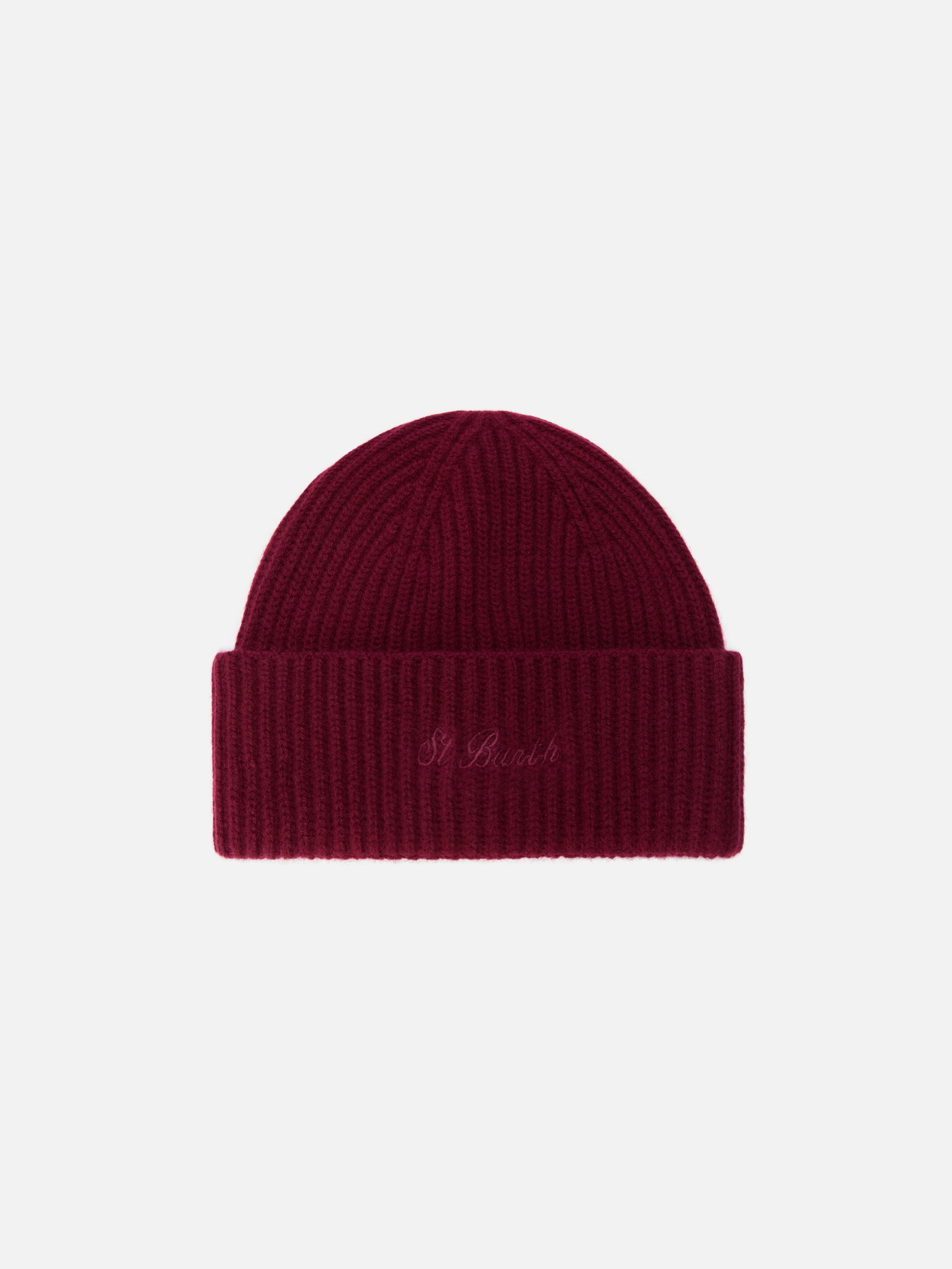 Berretto Moss in 100% LANA bordeaux con ricamo St. Barth