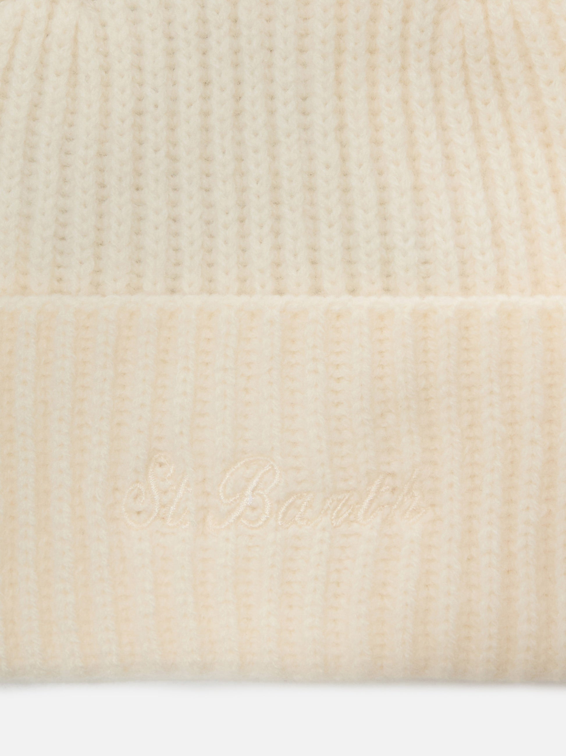Berretto Moss in 100% LANA bianca con ricamo St. Barth