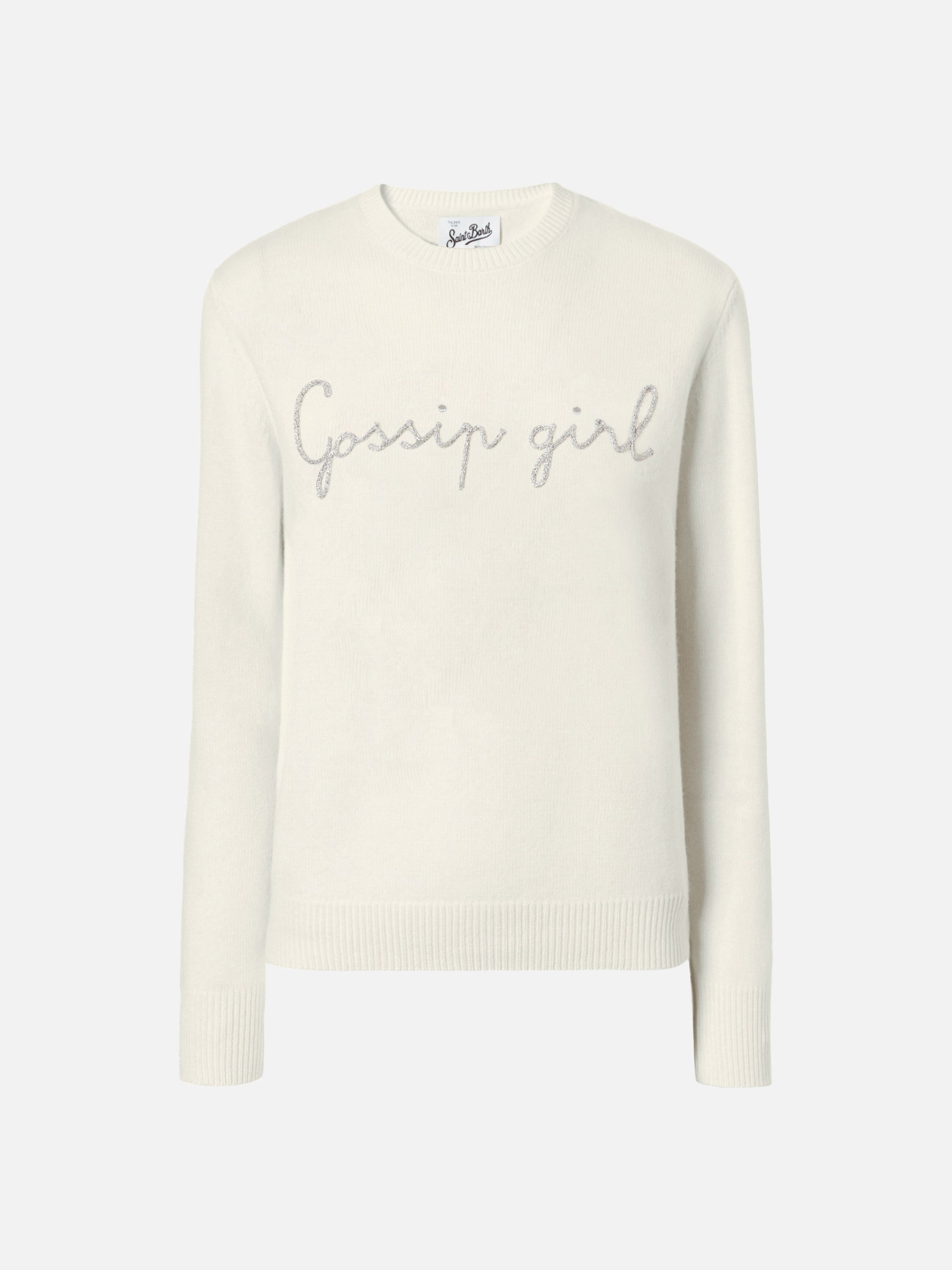 Maglione New Queen in misto cashmere bianco con ricamo lurex Gossip Girl