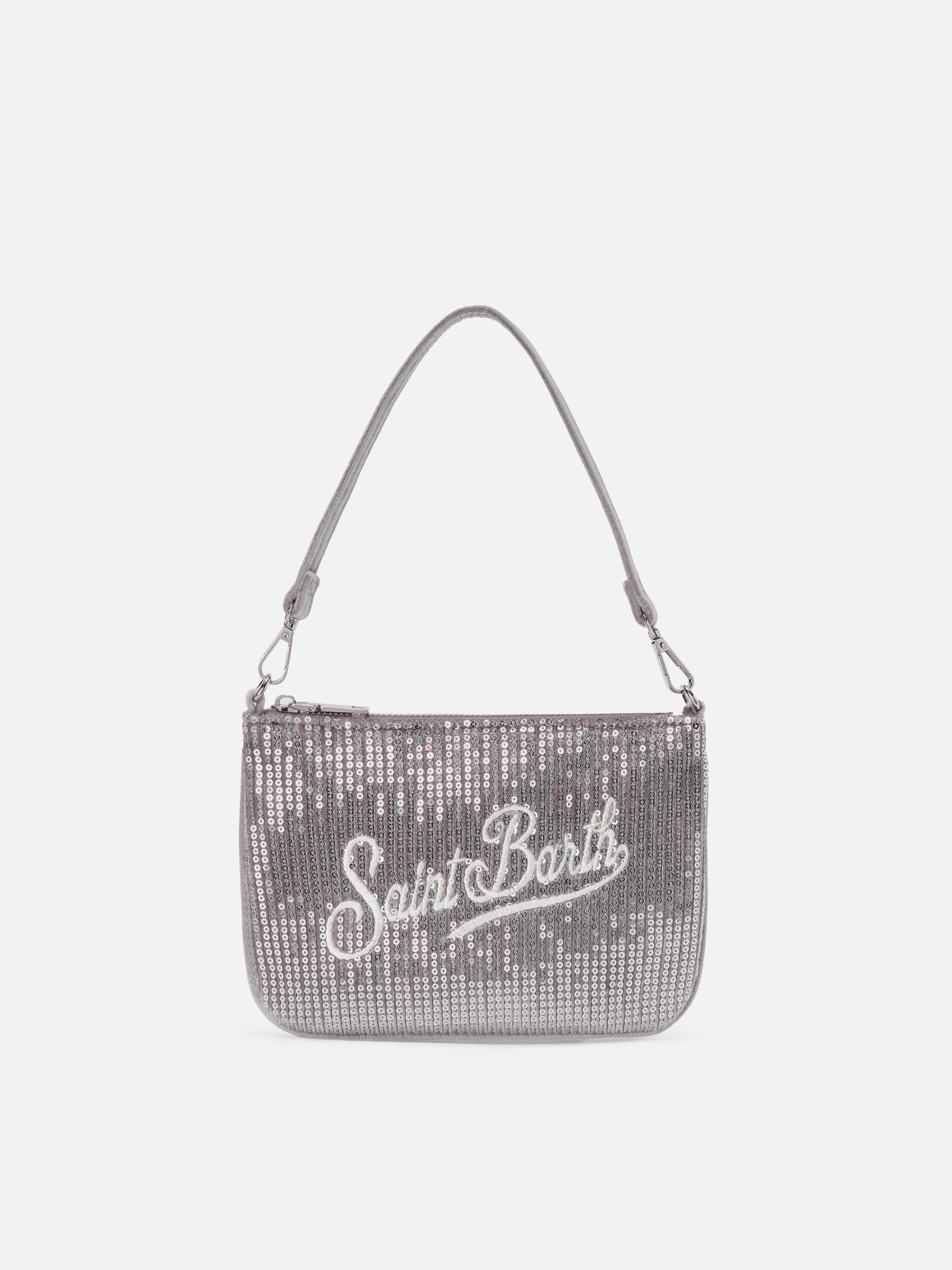 Borsetta a spalla Parisienne Mini Velvet grigia con paillettes
