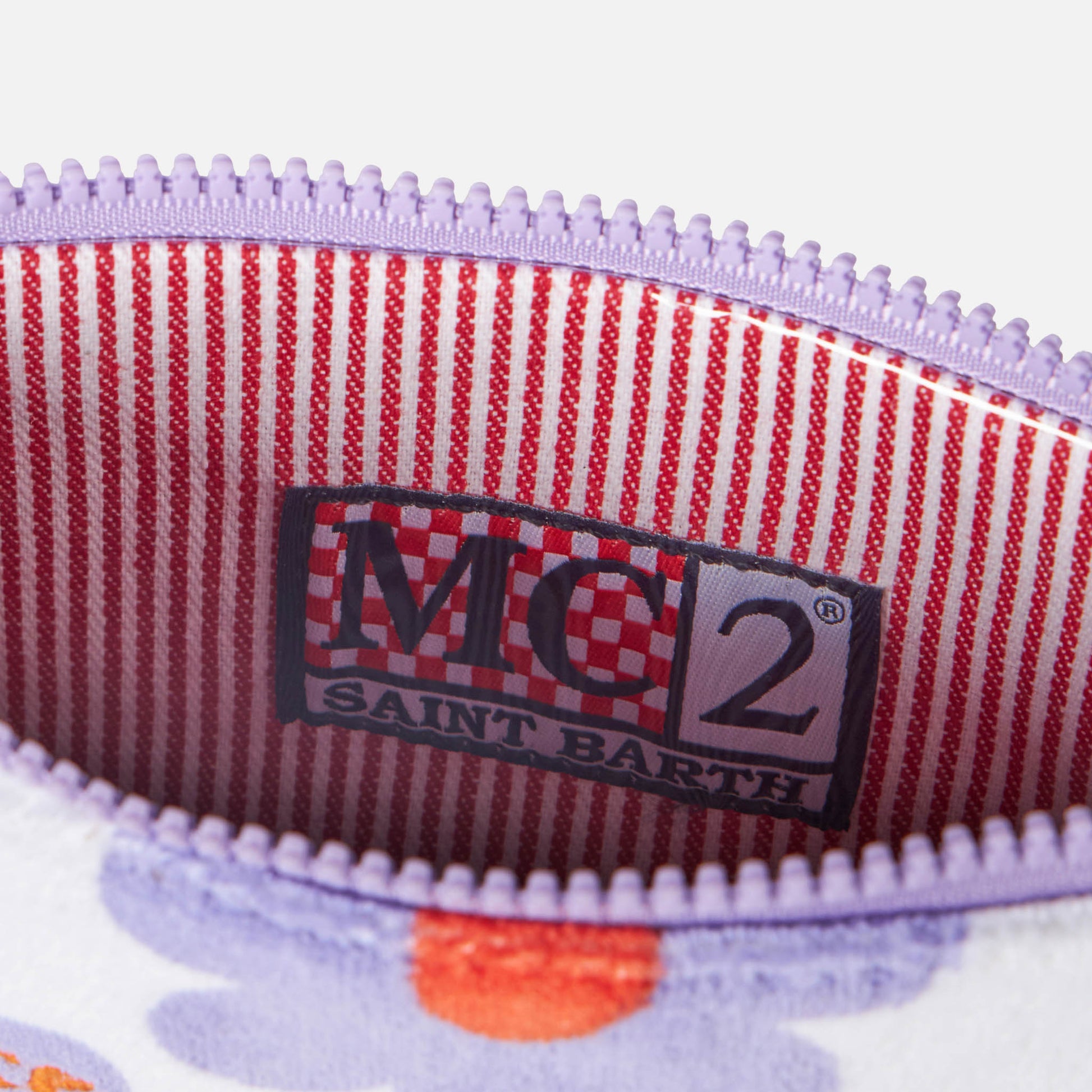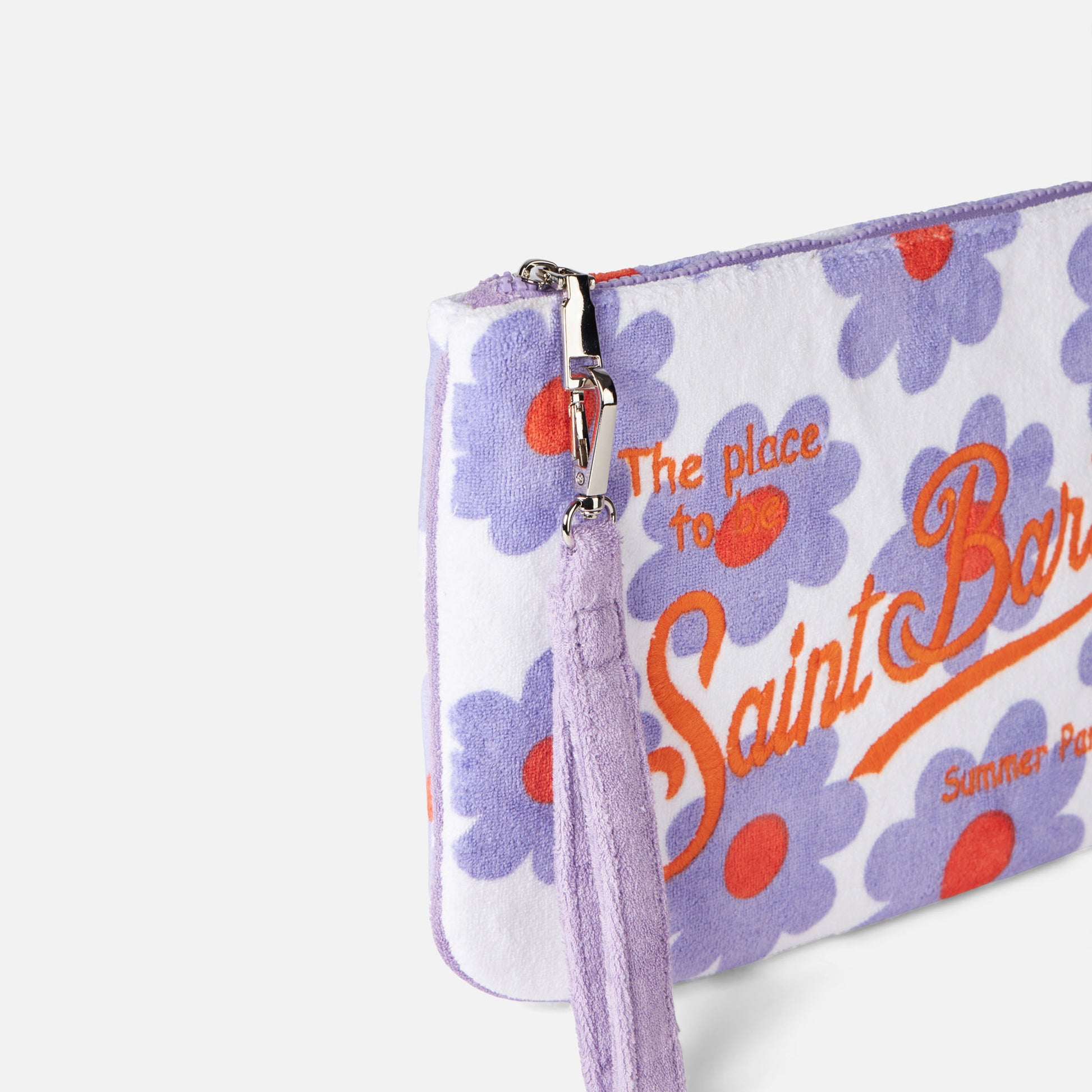 Pouch in spugna Parisienne con stampa margherite viola e arancio