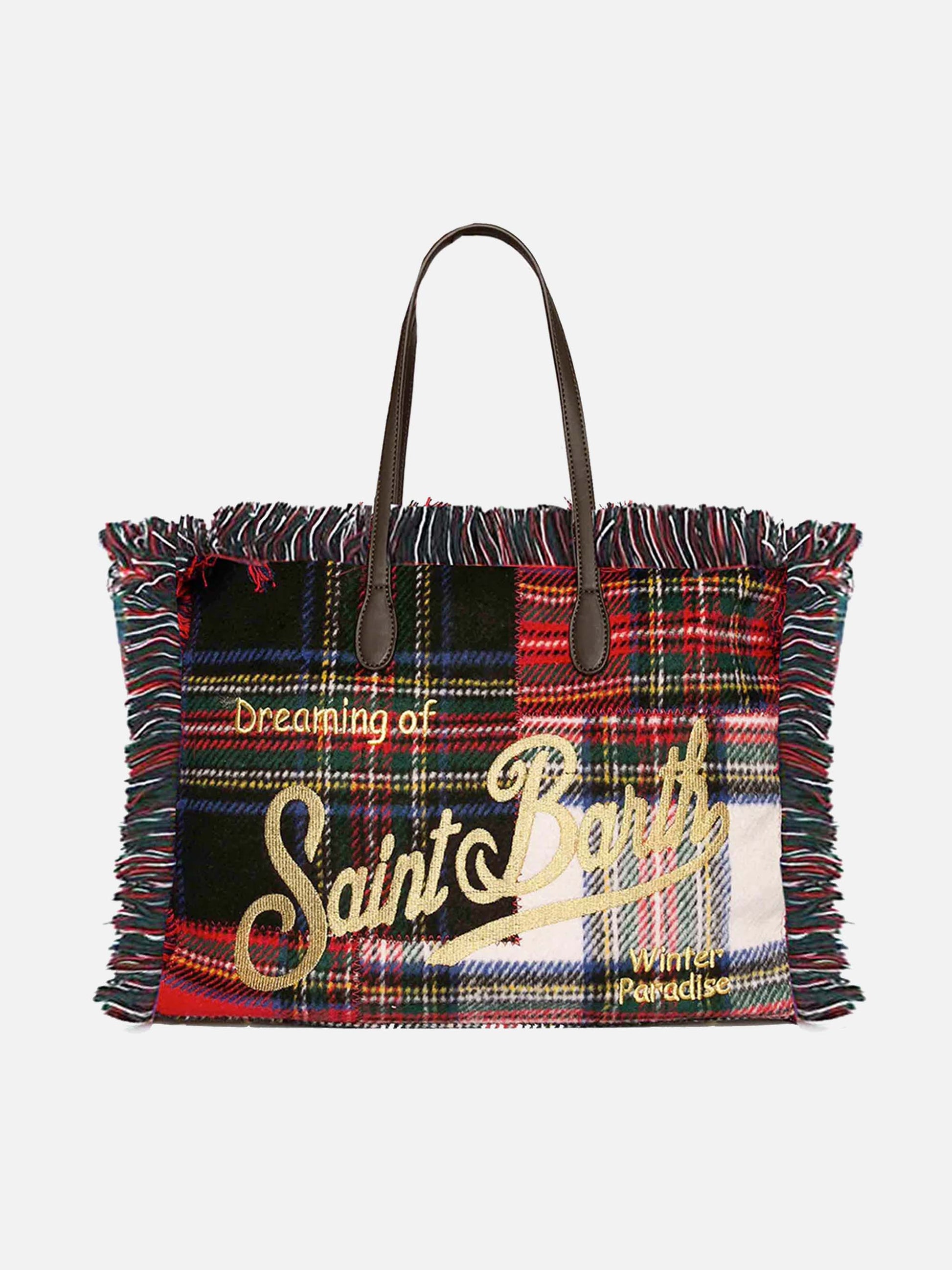 Borsa a spalla Vanity in tartan patchwork di lana