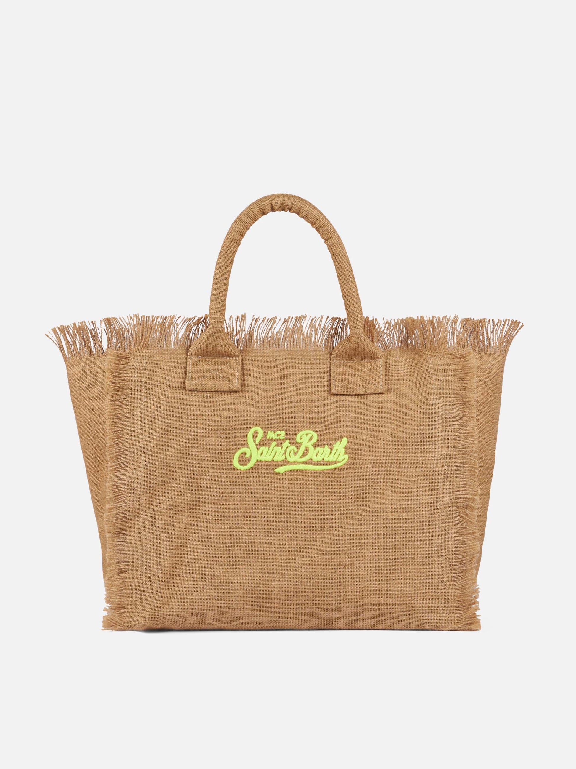 Borsa a spalla Vanity in juta naturale con logo ricamato