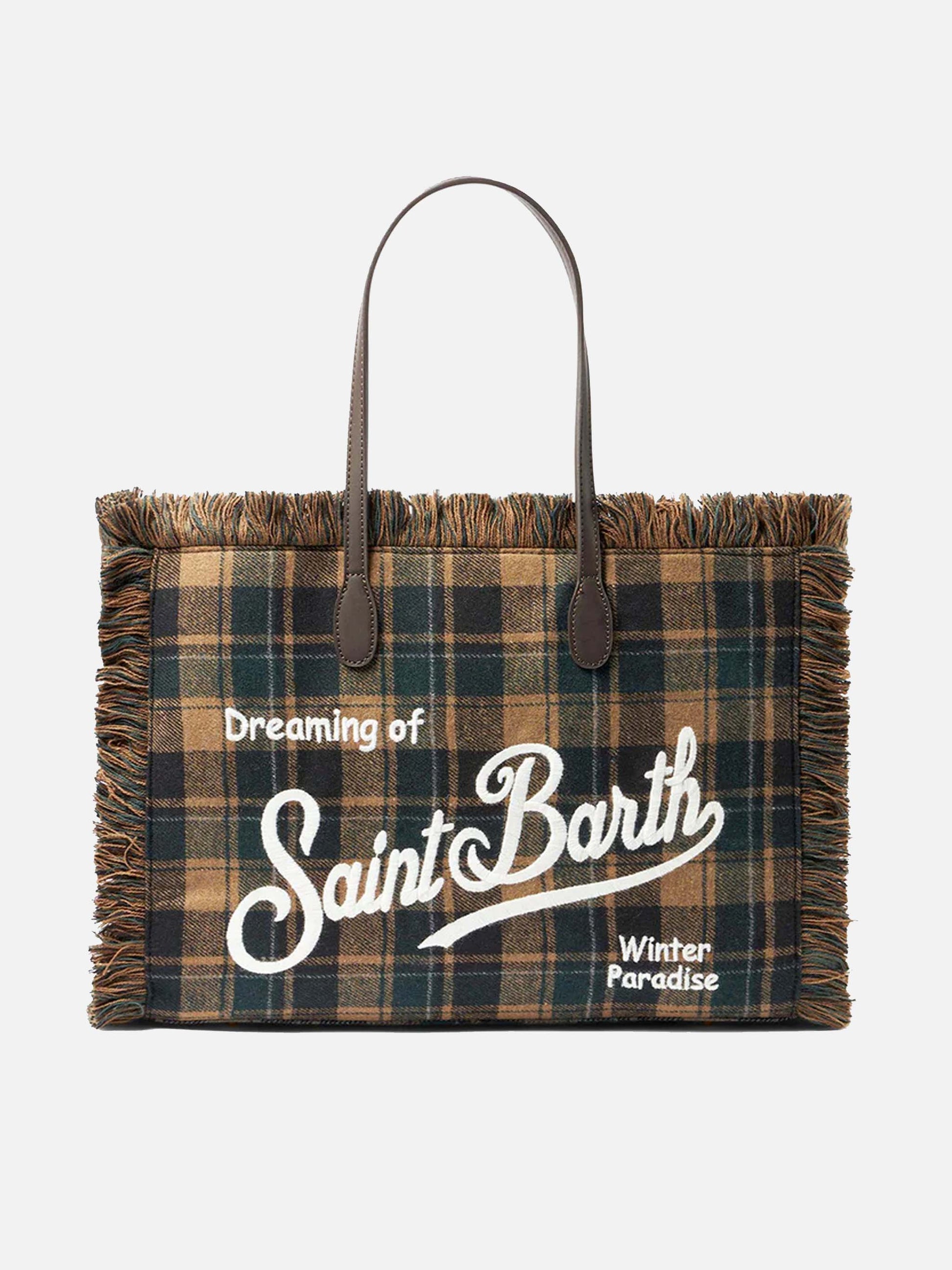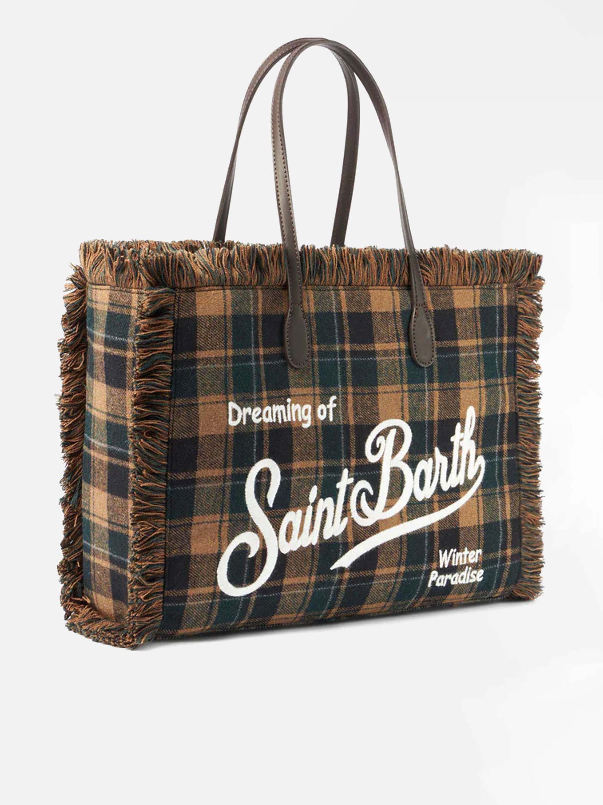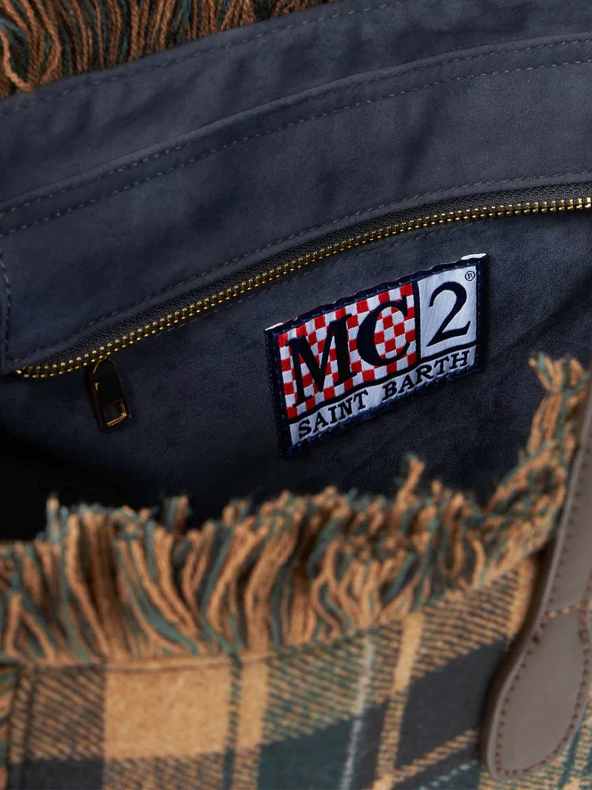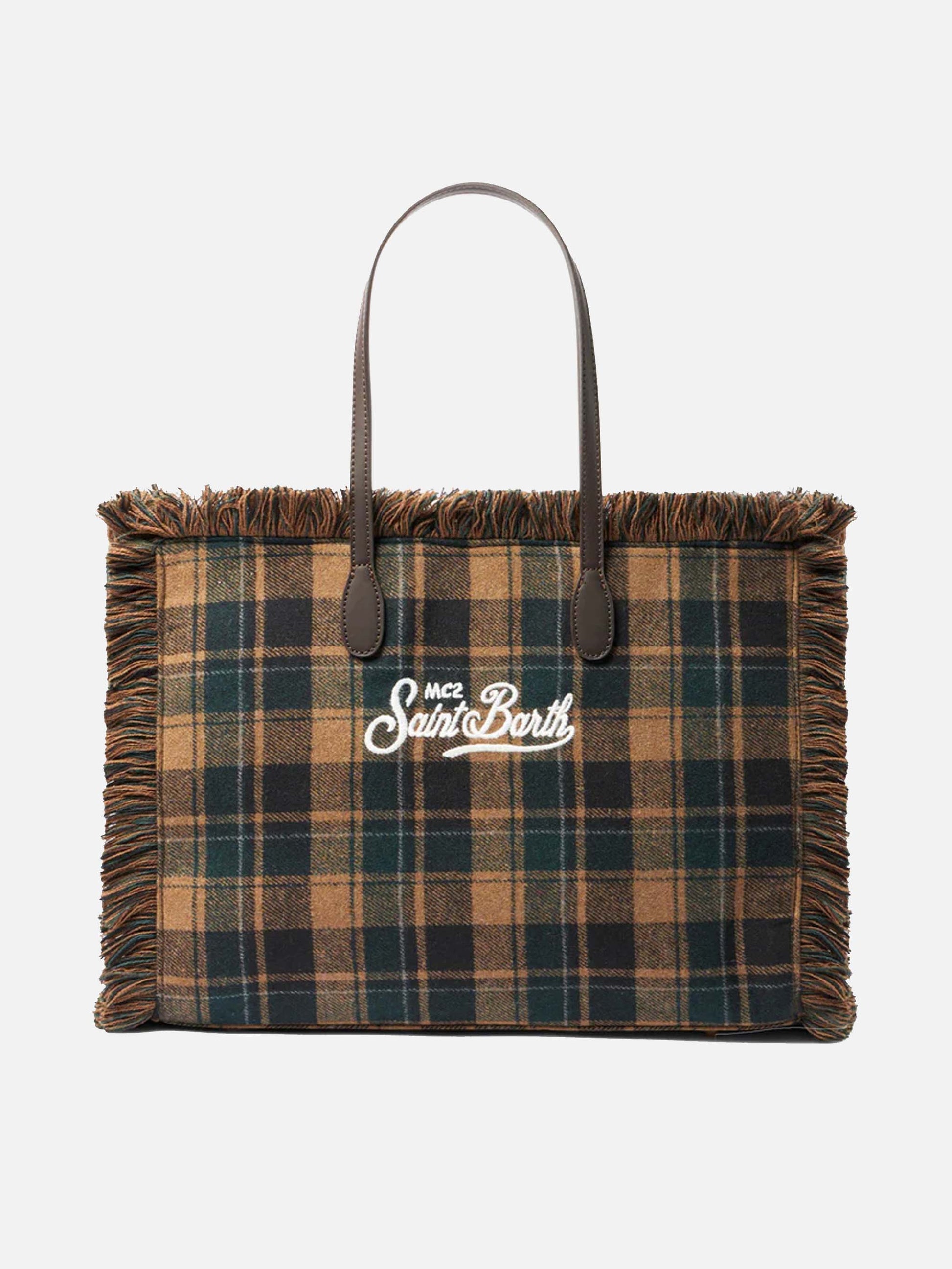 Borsa a spalla Vanity con fantasia tartan verde e marrone