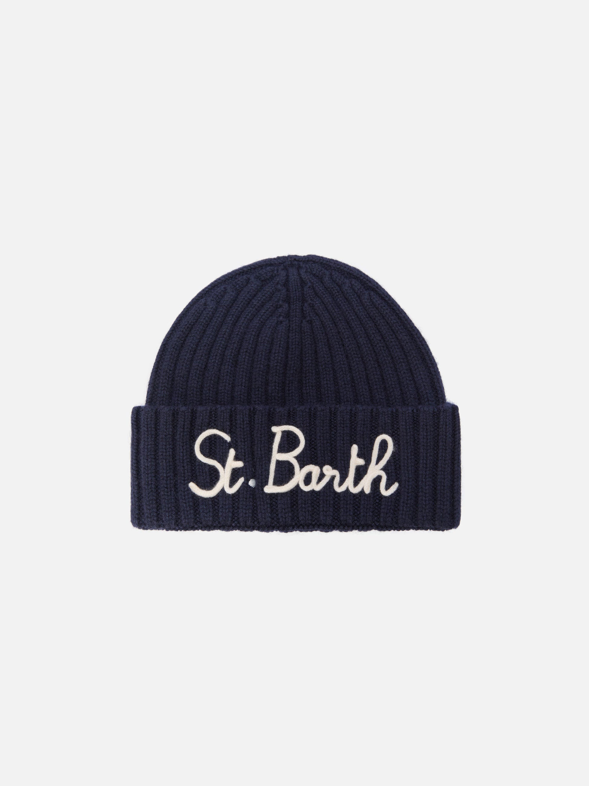 Berretto Wengen in misto cashmere blu con ricamo St. Barth