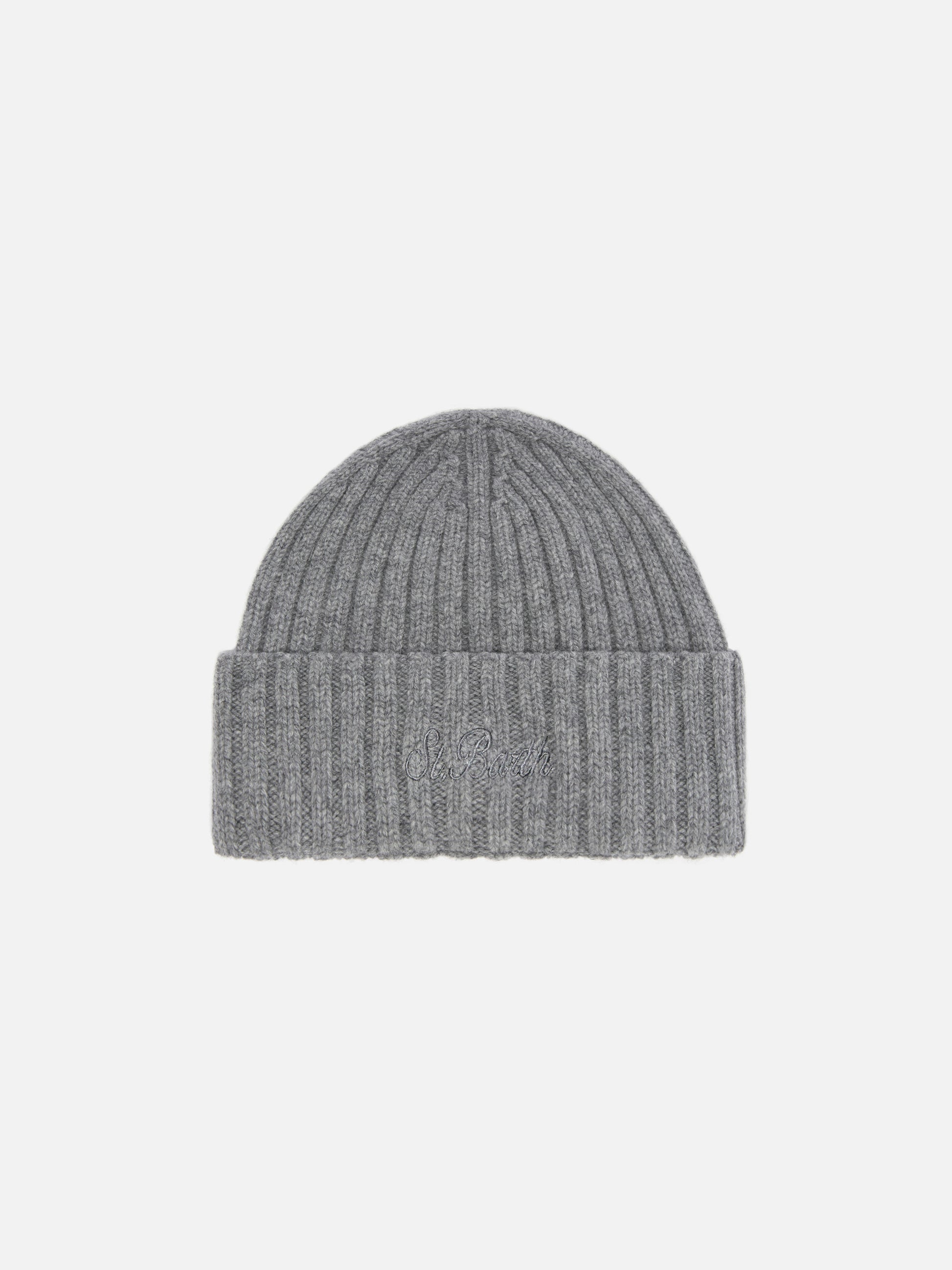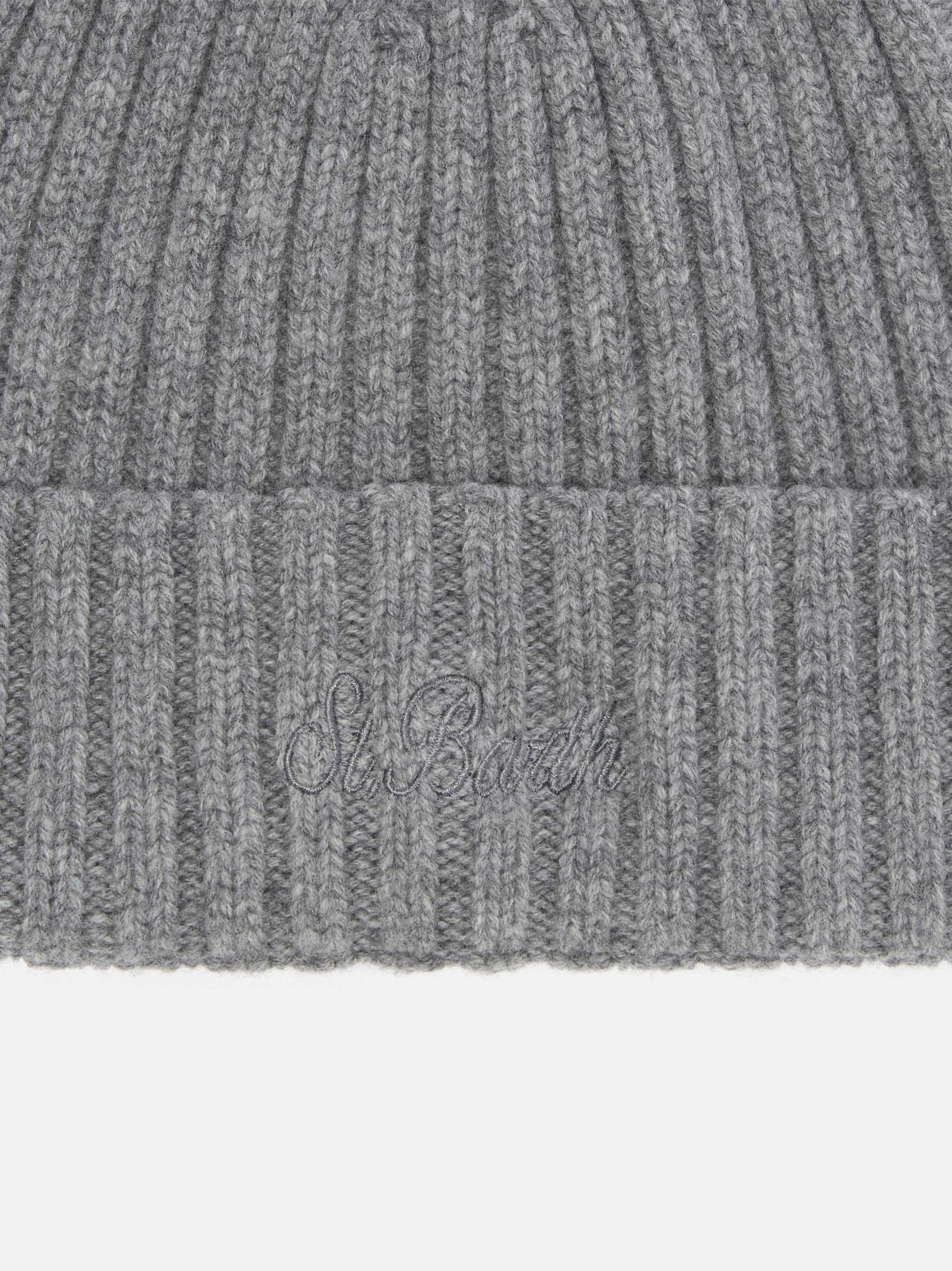 Berretto Wengen in lana grigio melange con ricamo St. Barth sul risvolto