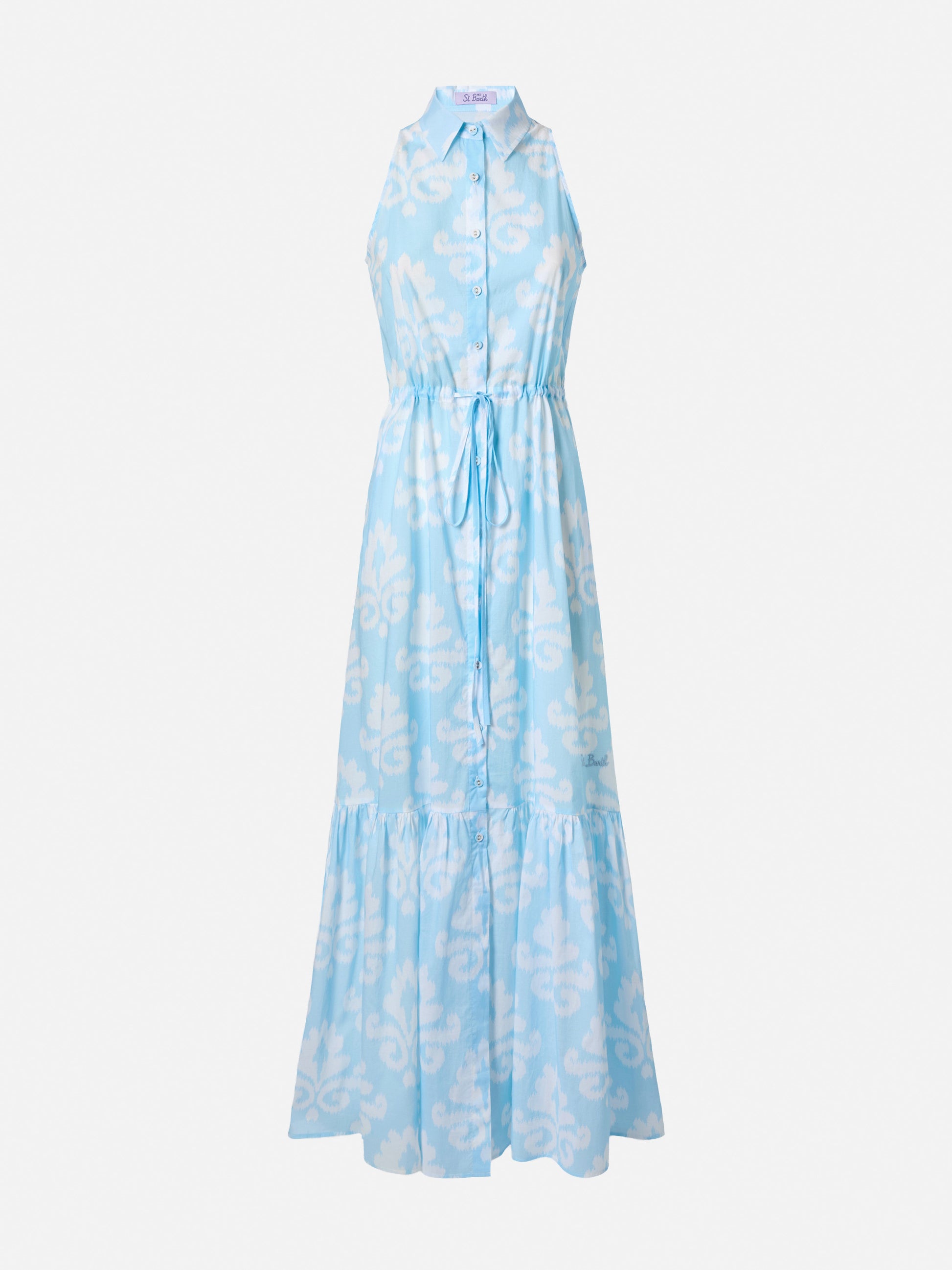 Abito lungo Ida con scollo all'americana e stampa ikat