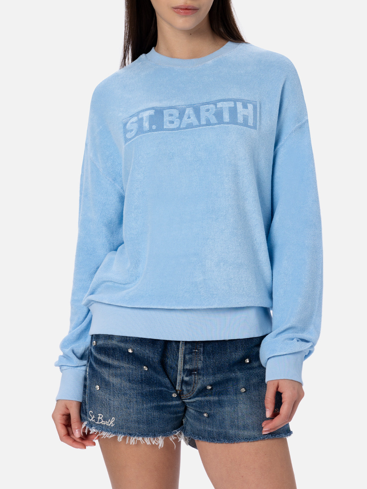Felpa da donna Stardust di cotone spugna di colore azzurro