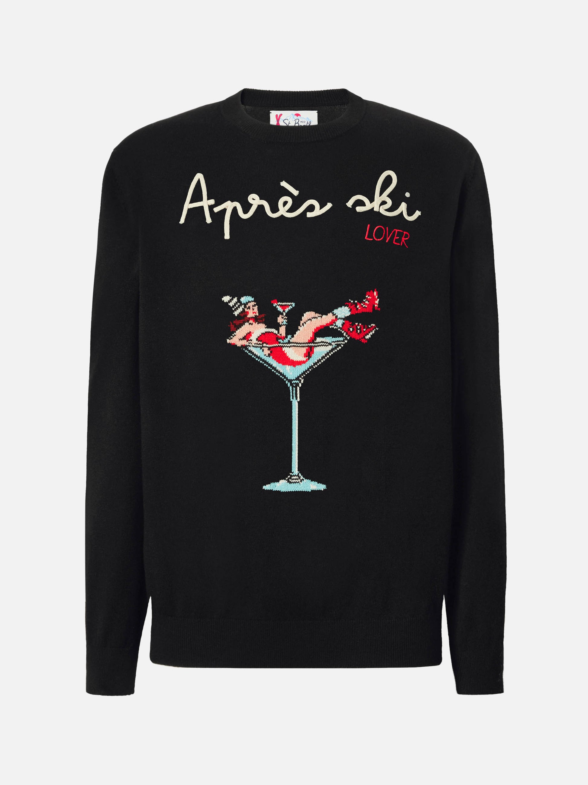 Black sweater Heron with Apres ski lover embroidery