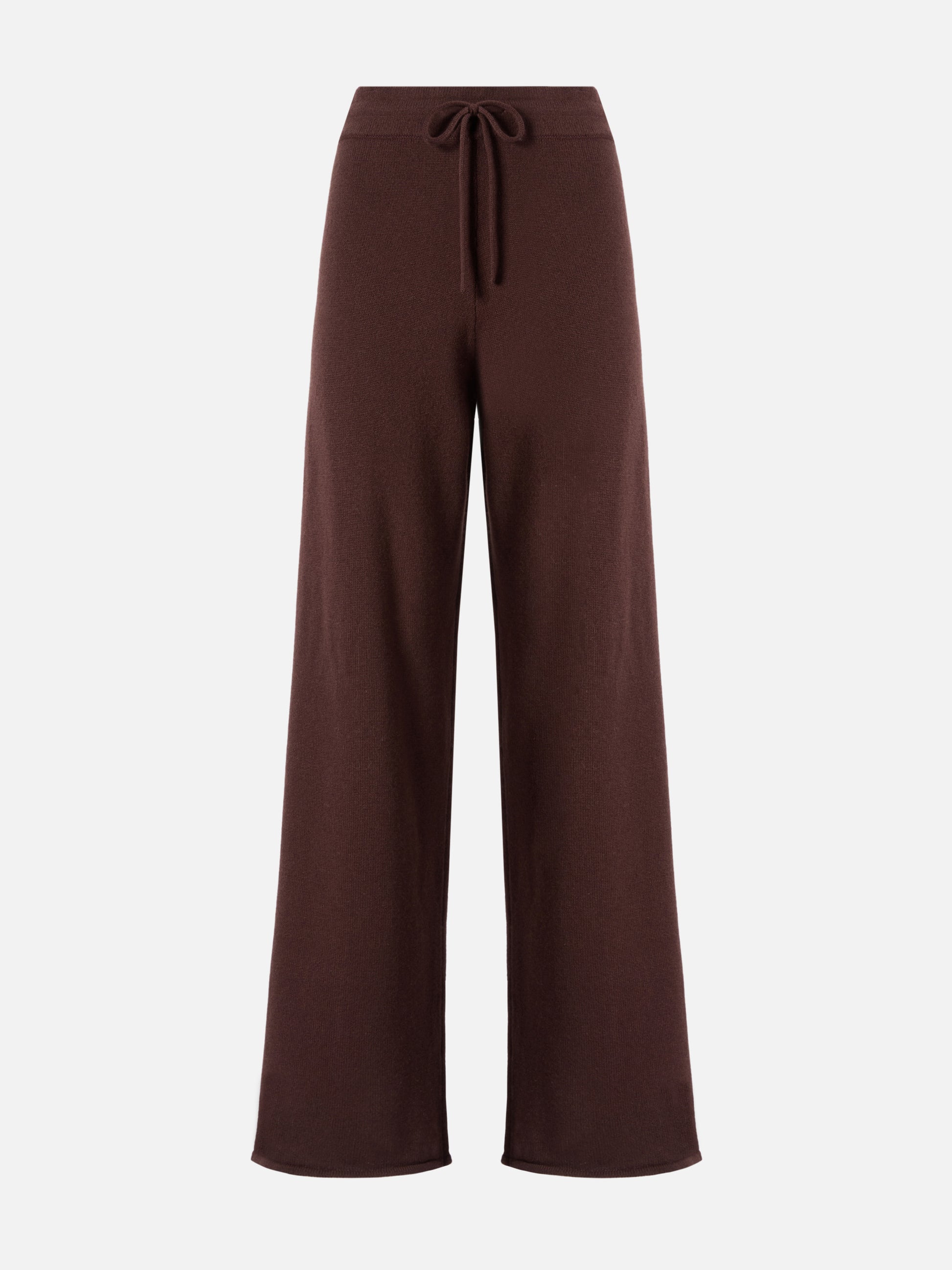 Cambon palazzo trousers in pure wool brown high waist with drawstring