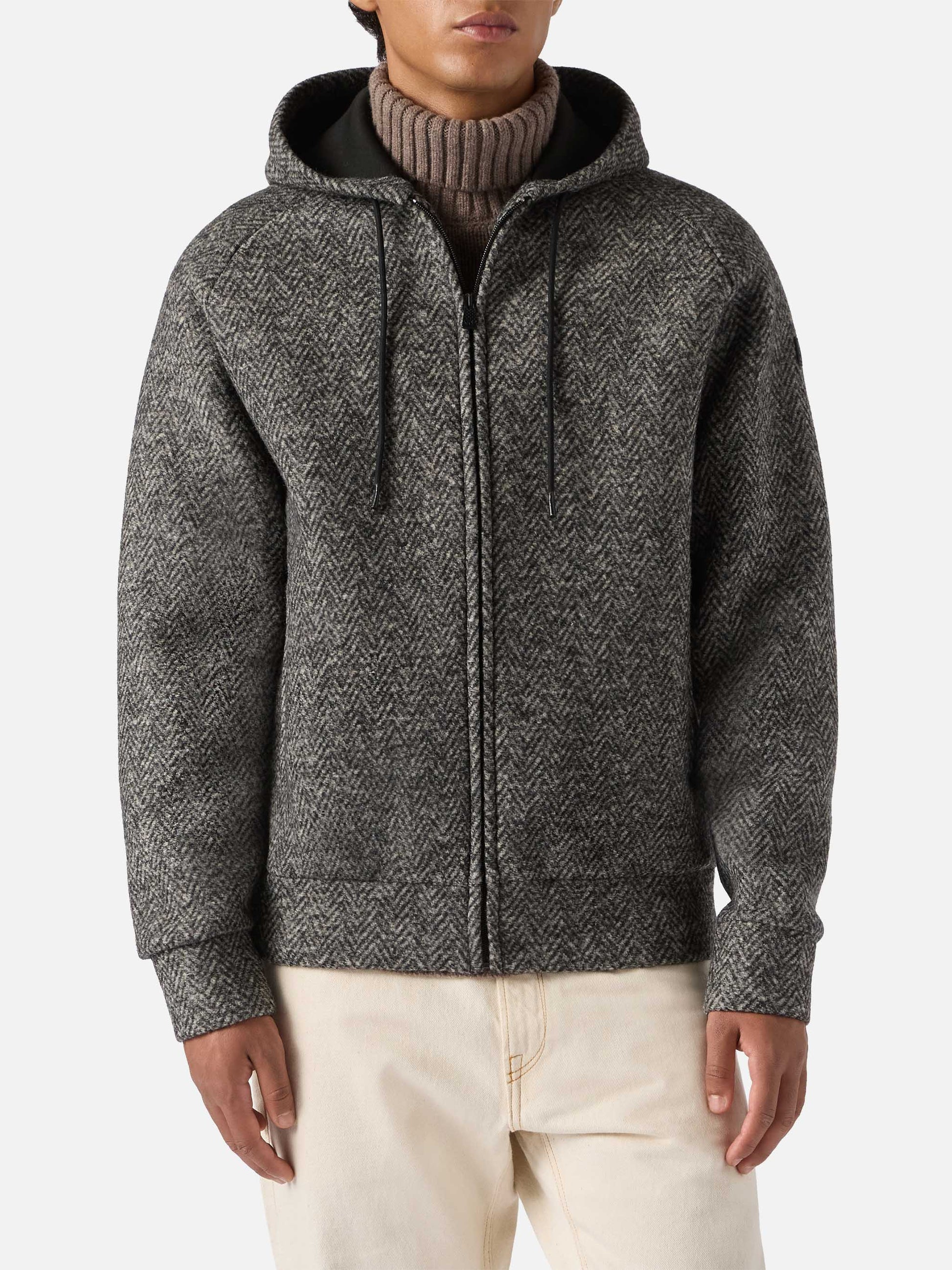 Carrell Wool herringbone jacket with zip and hood