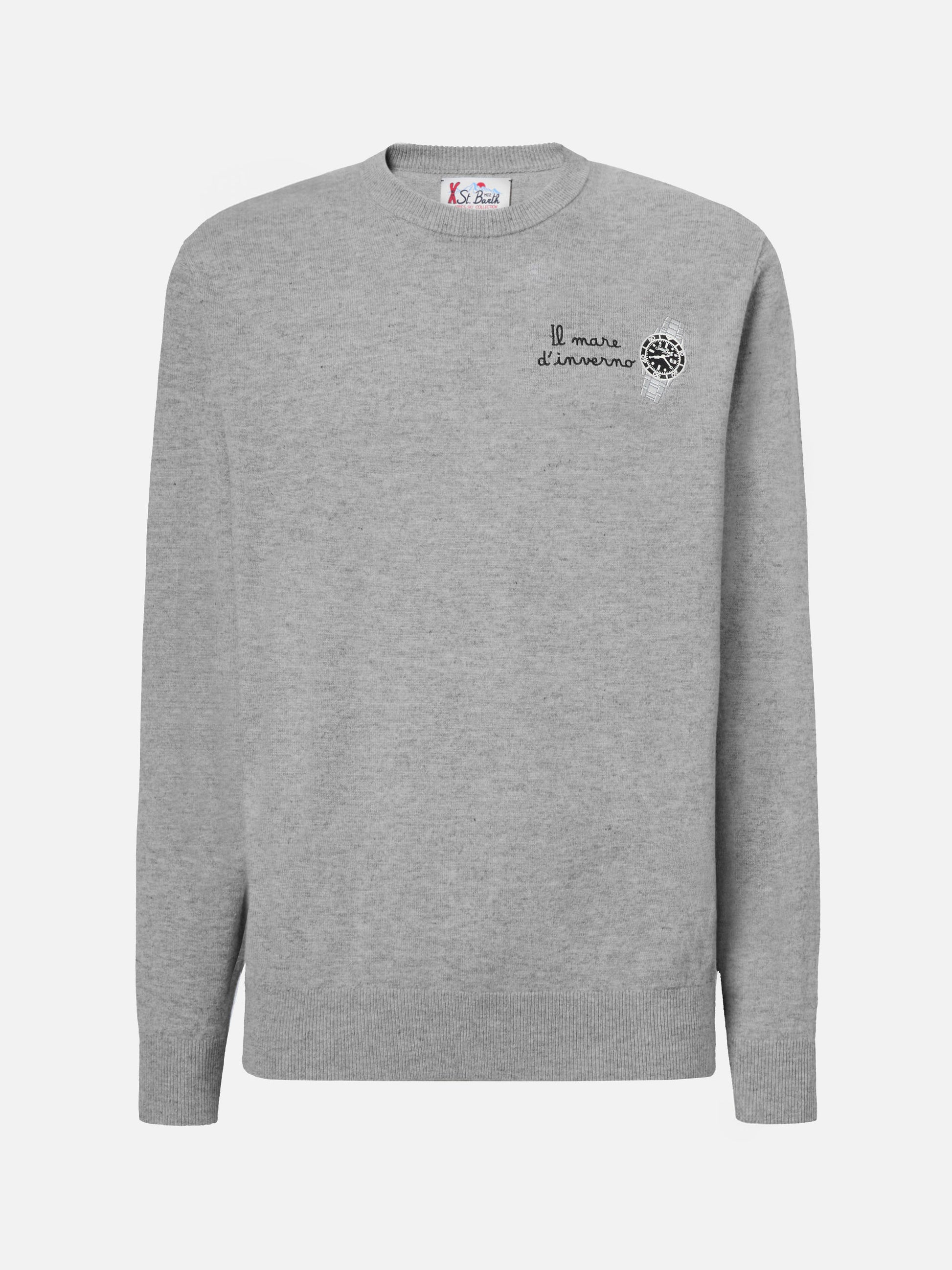 Crewneck sweater Heron Light with Il mare d'inverno embroidery