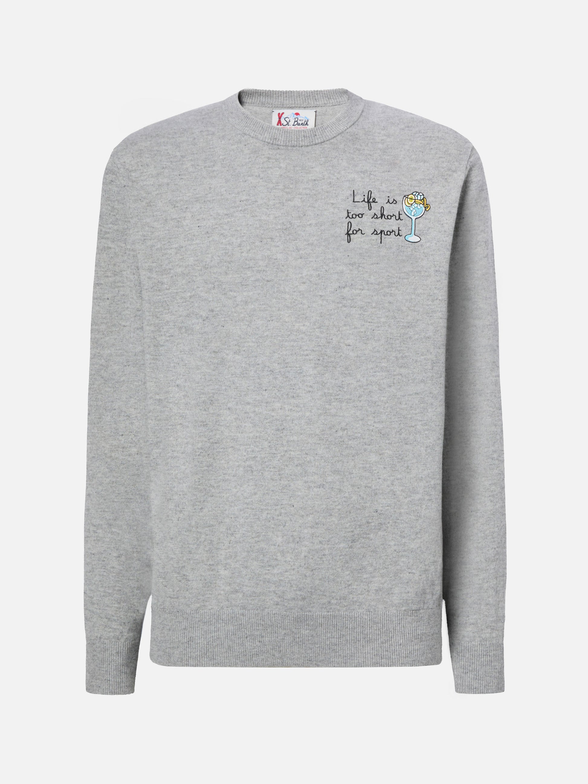 Crewneck sweater Heron Light with Life is too short for sport embroidery