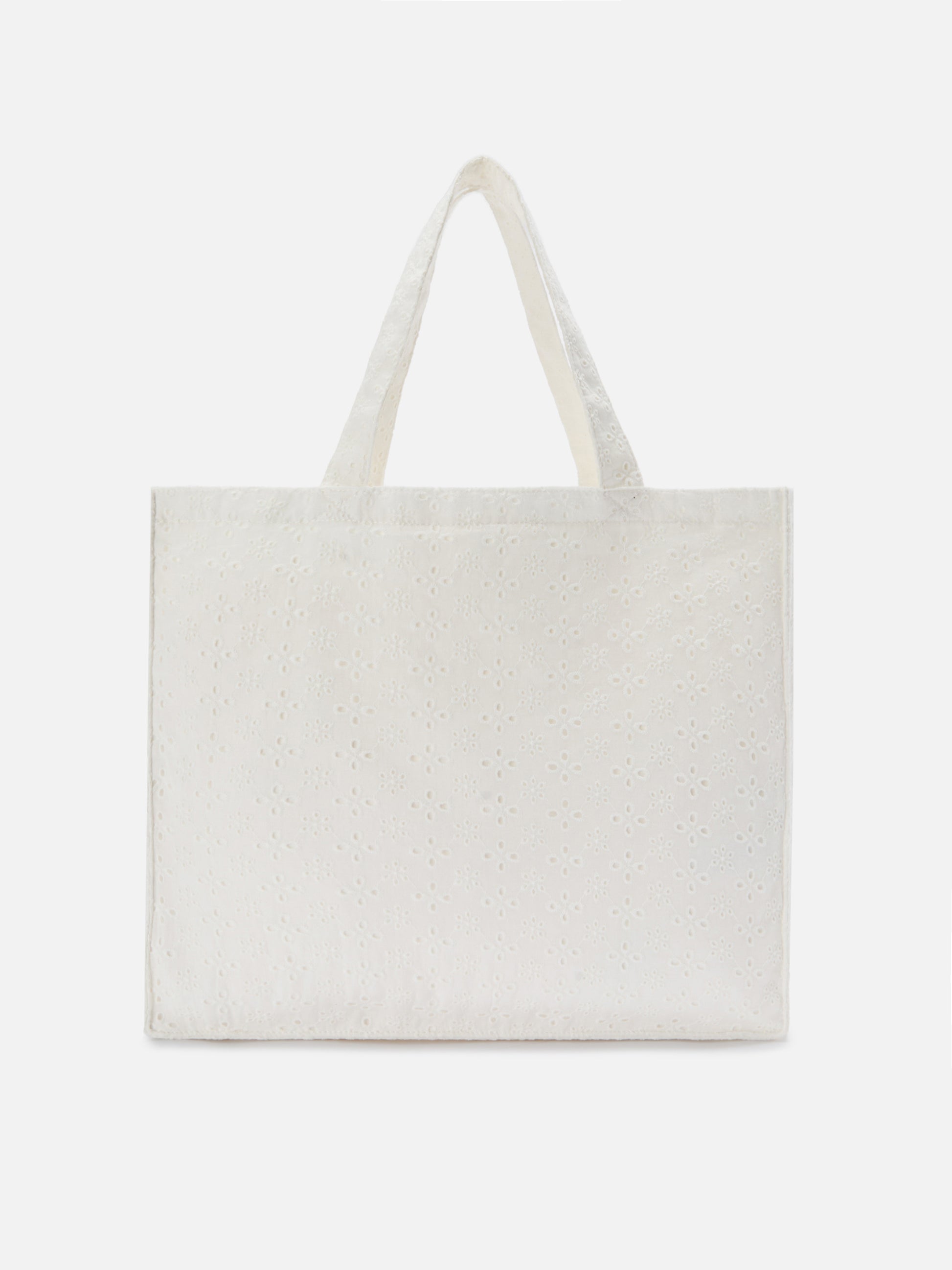 Essential white broderie anglaise cotton tote bag with contrasting logo