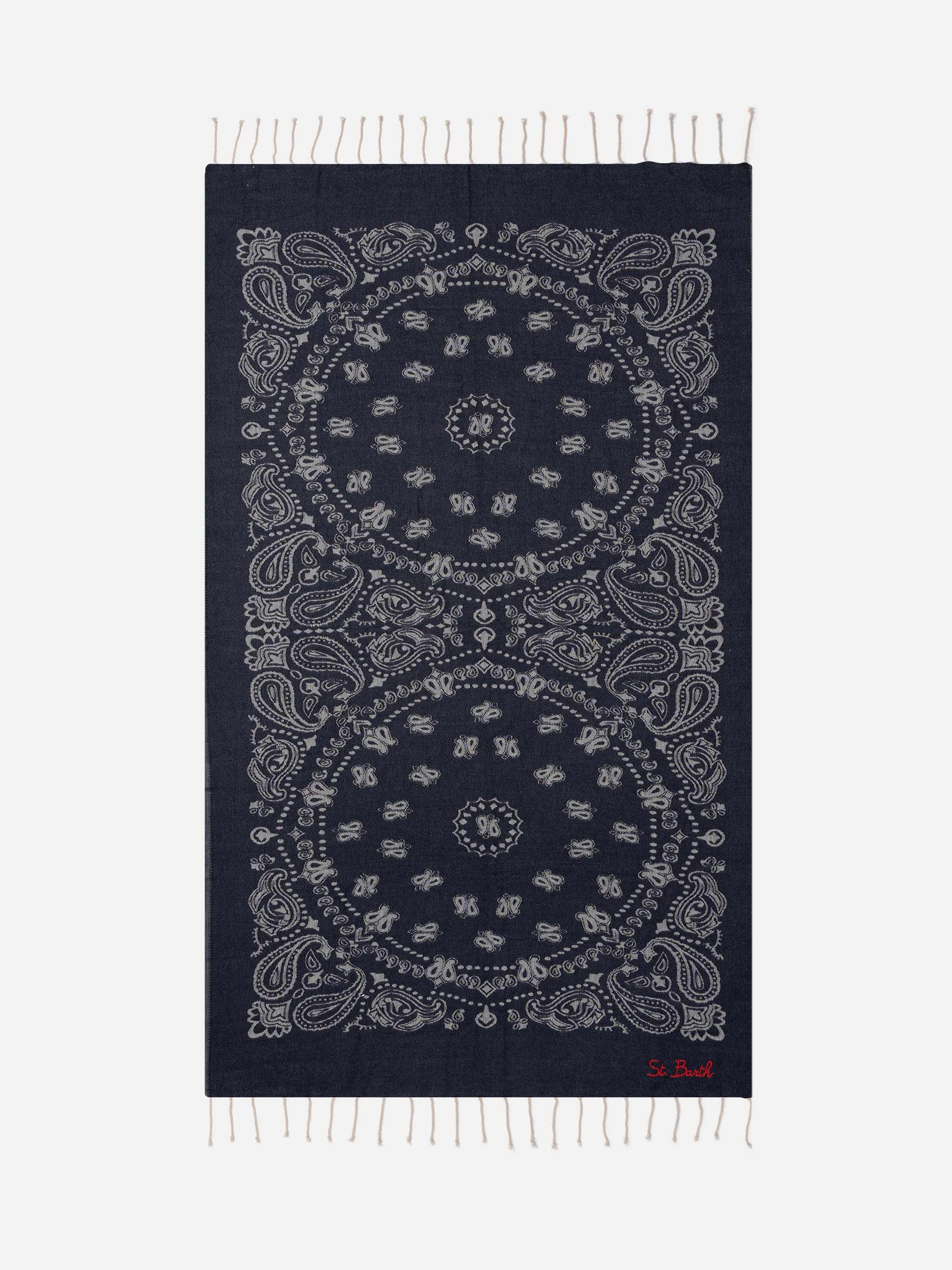 Foutas cotton Jaquard beach towel with navy blue bandana pattern