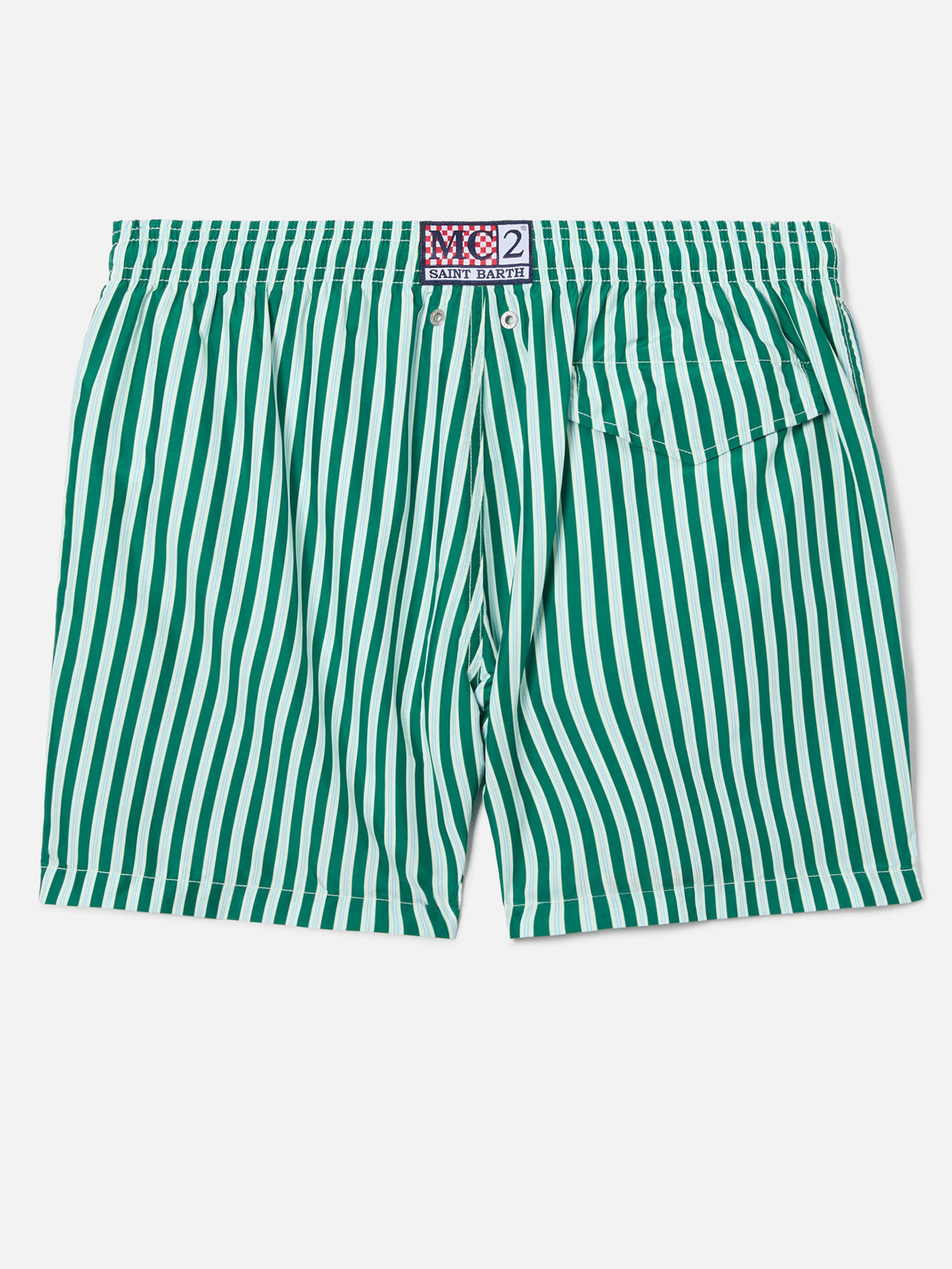 Green striped Lighting swim shorts with St. Barth embroidery