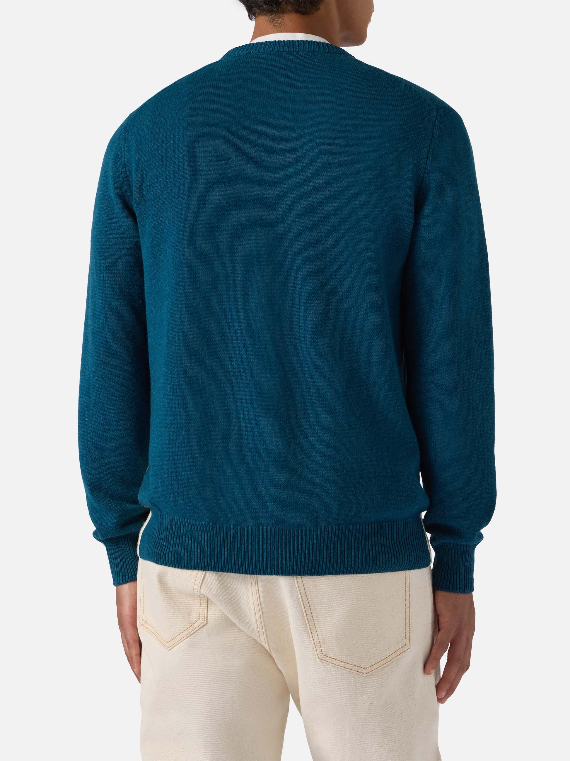 Heron sweater in teal green with Après Ski postcard jacquard