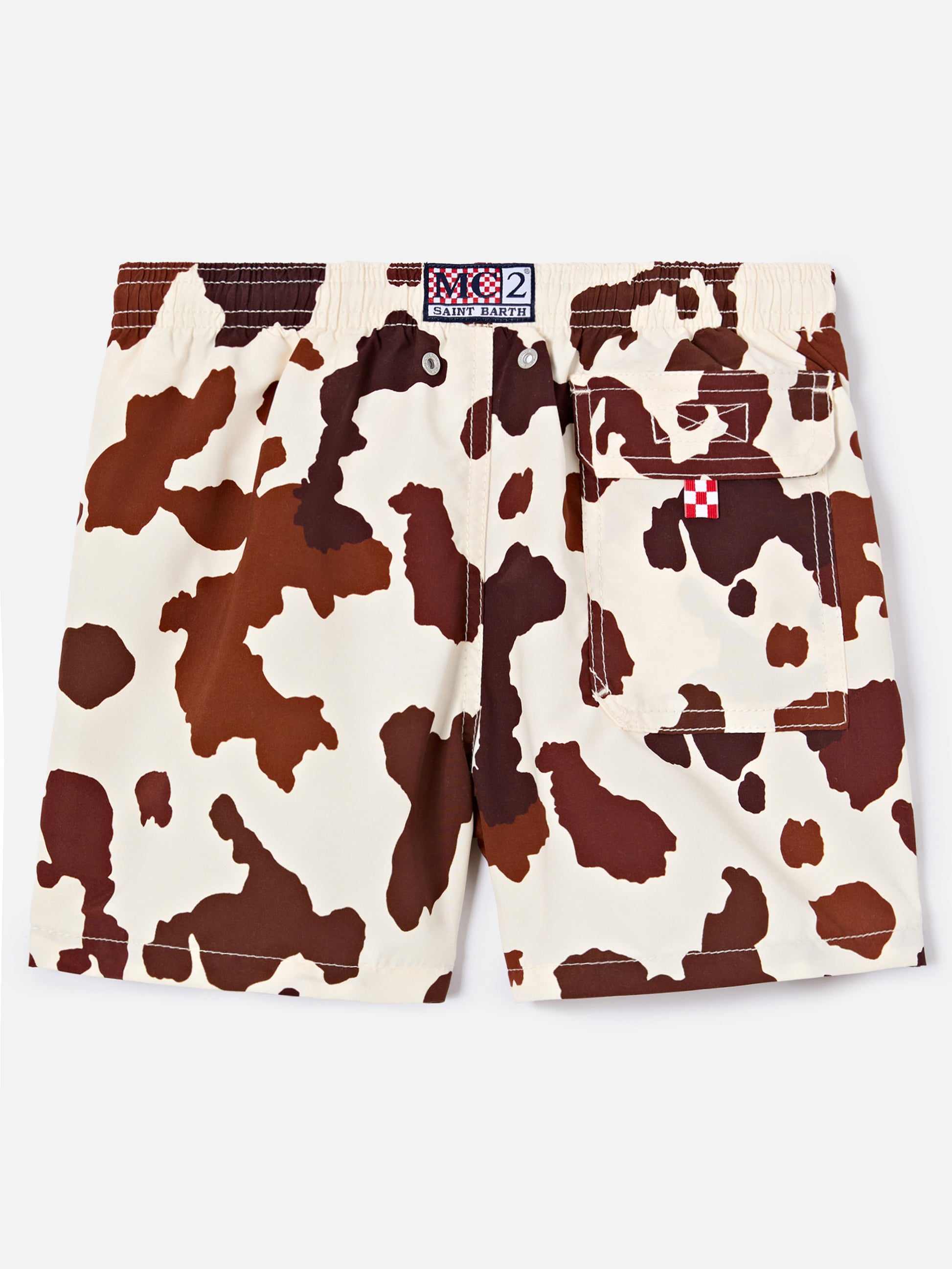 Jean swim shorts with cow animal print