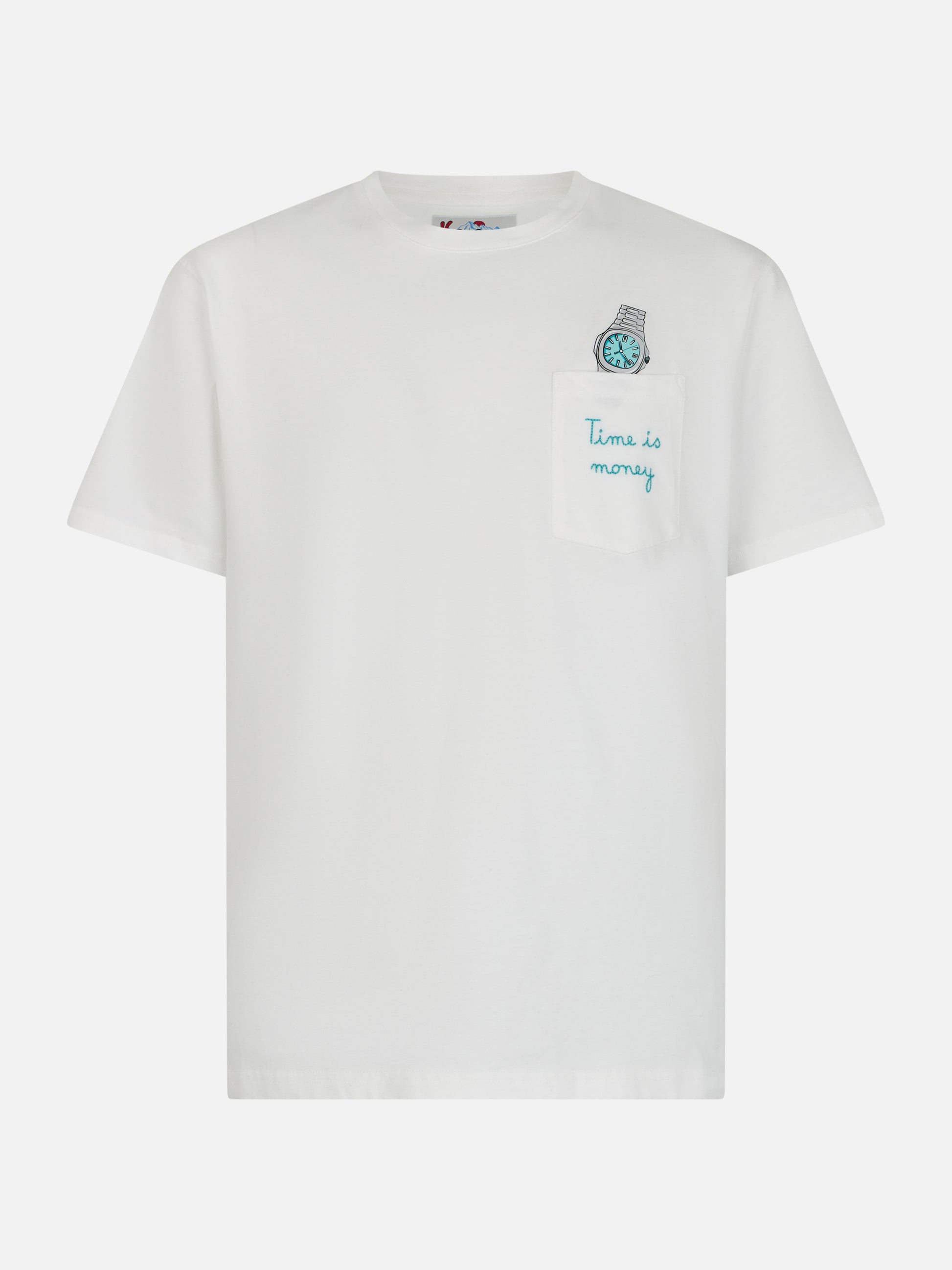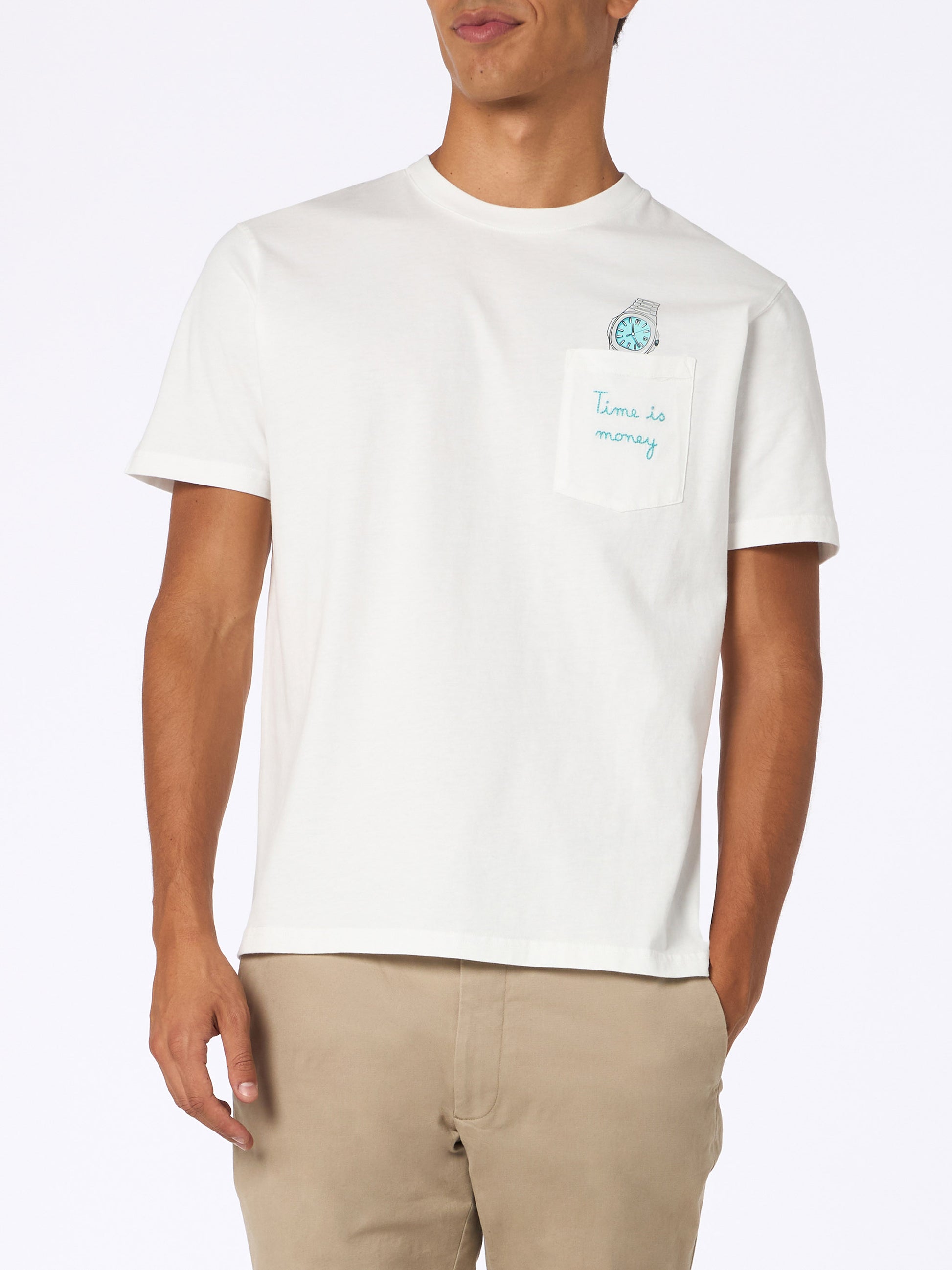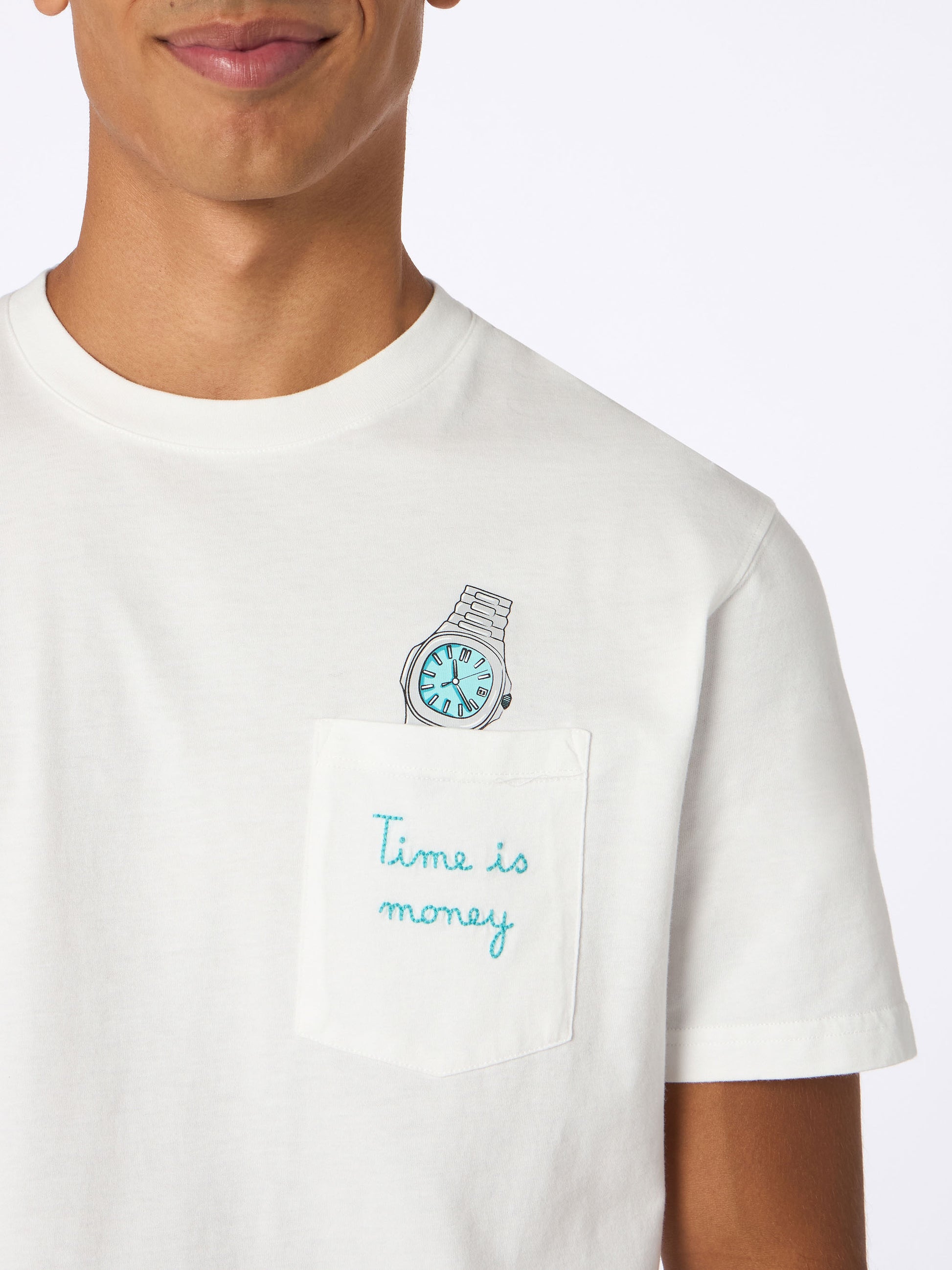 Man white cotton t-shirt Connor with Time is money embroidery