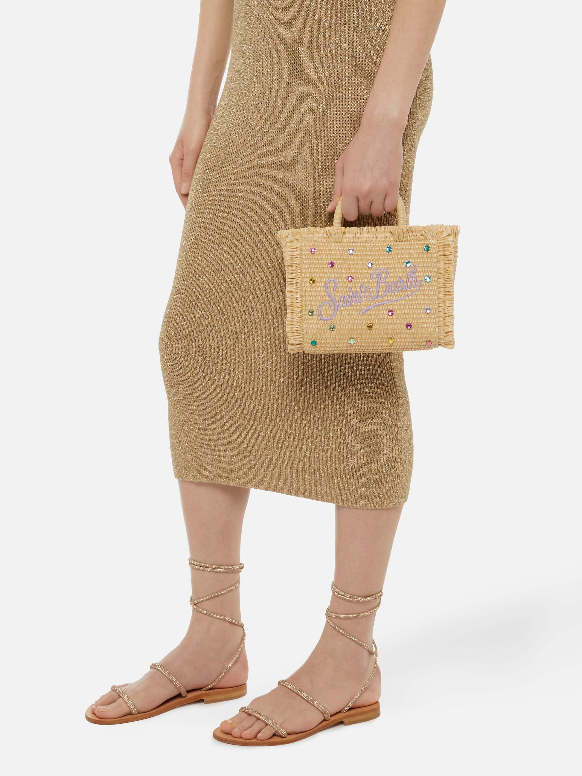Mini Vanity Straw effect bag with rhinestone embellishment