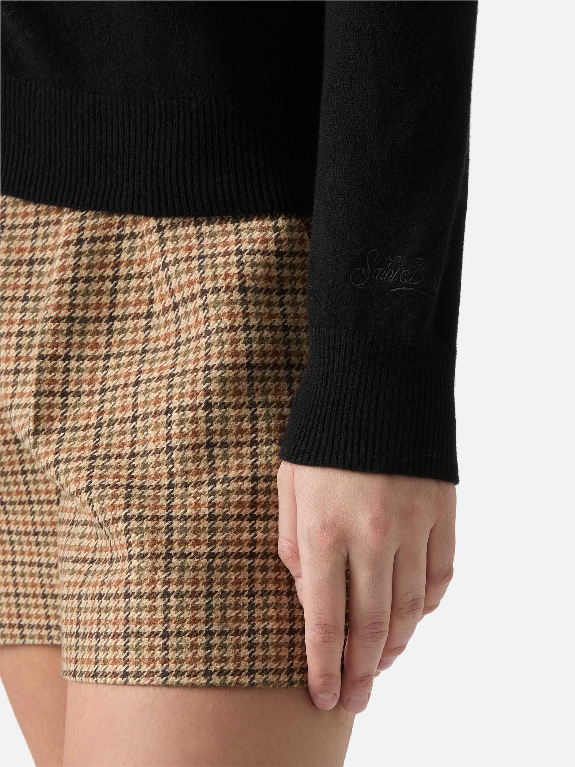 Moody turtleneck sweater in cashmere in black with St. Barth embroidery