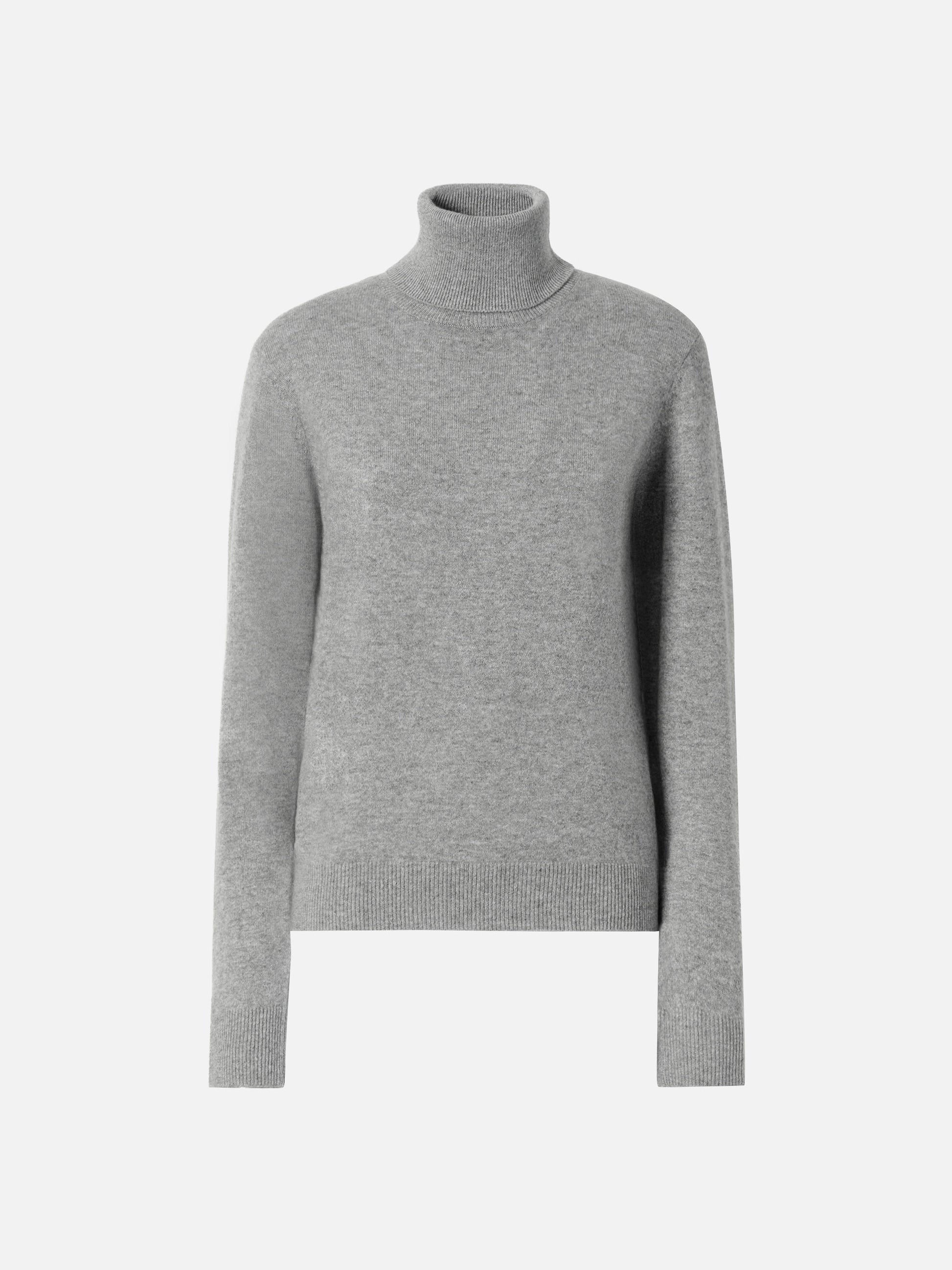 Moody turtleneck sweater in cashmere in grey melange with St. Barth embroidery