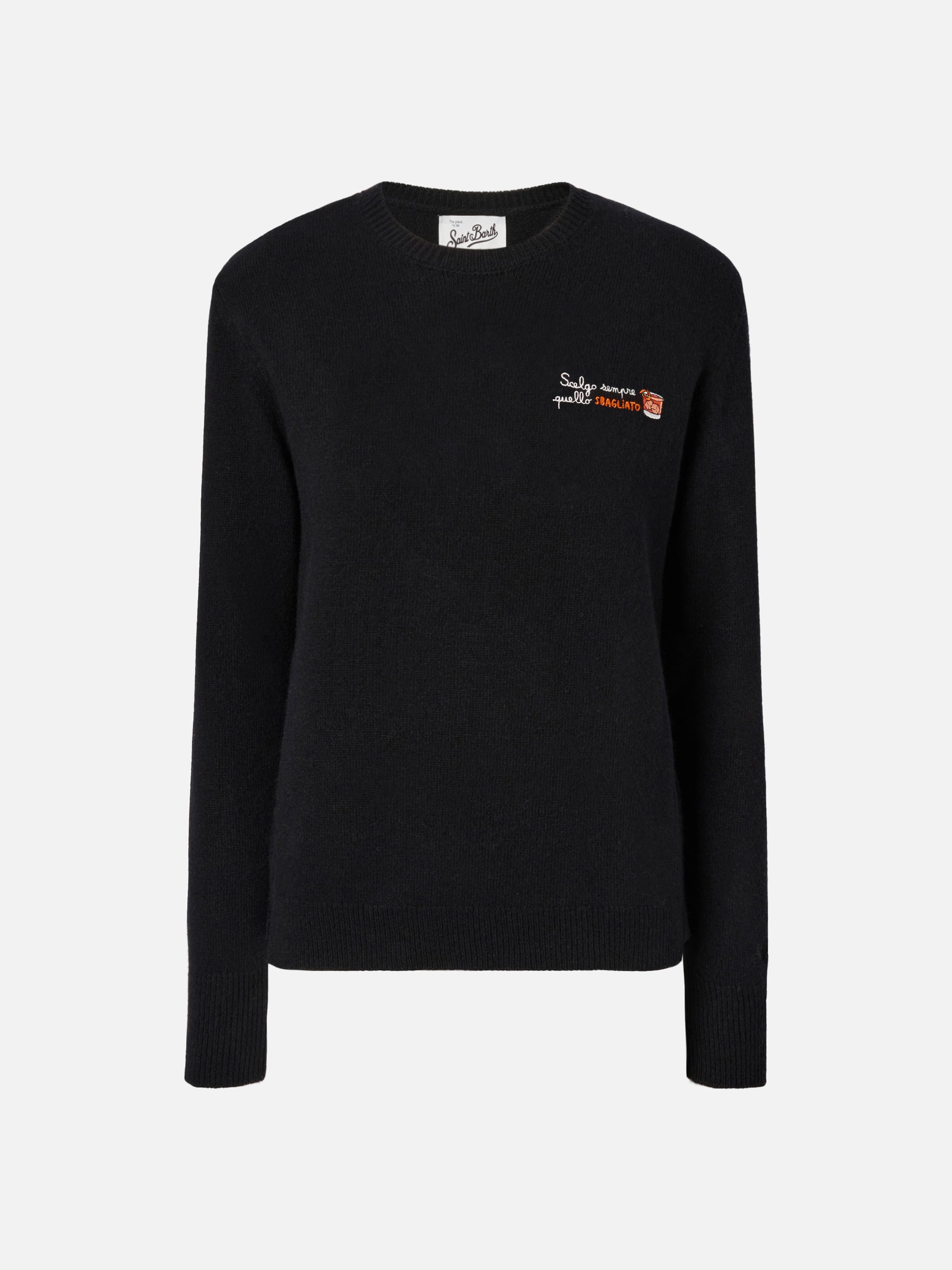 New Queen cashmere-blend sweater in black with Scelgo sempre quello sbagliato embroidery