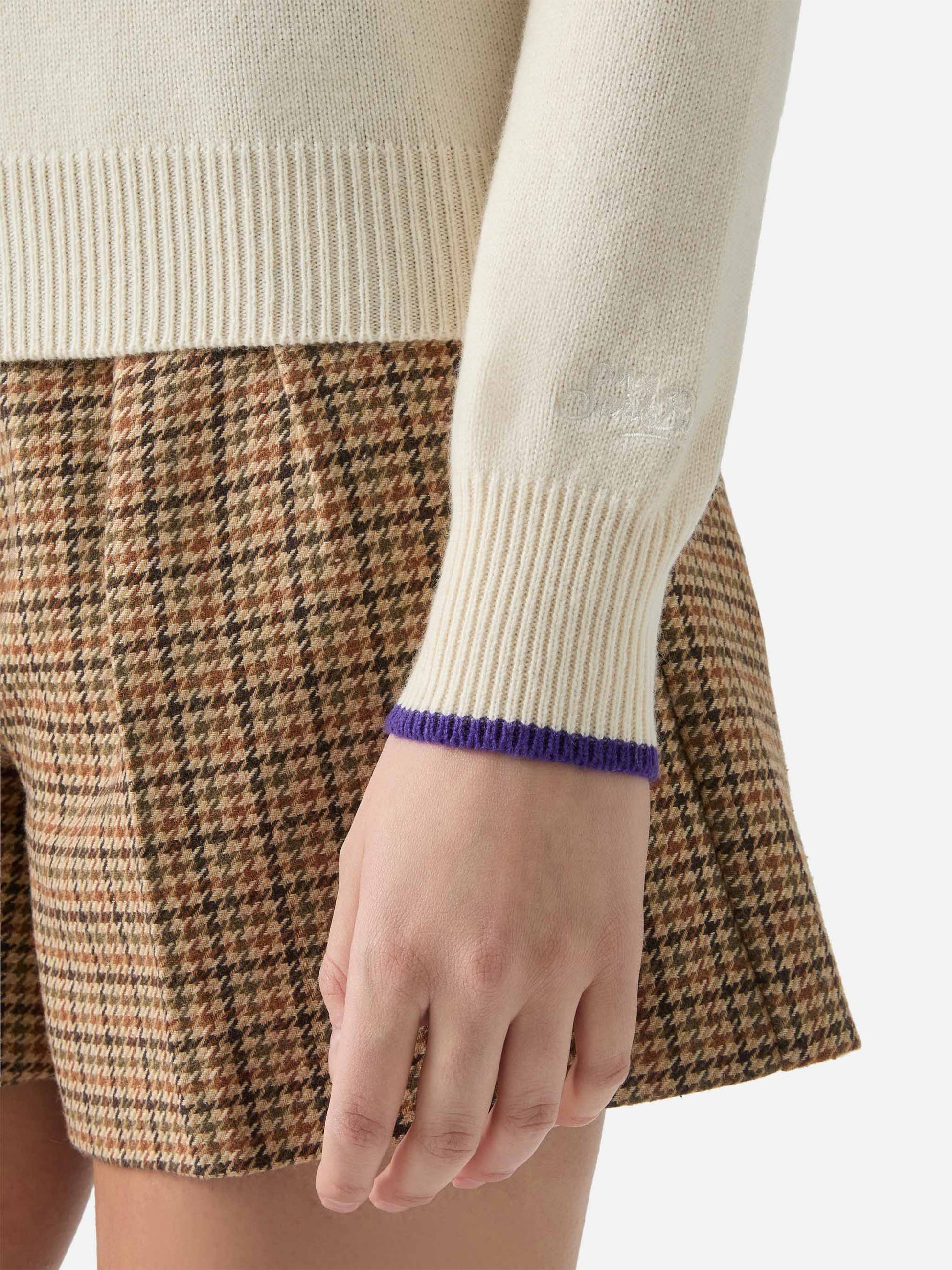 New Queen crewneck in white with Strass & Skipass rhinestone embellishment