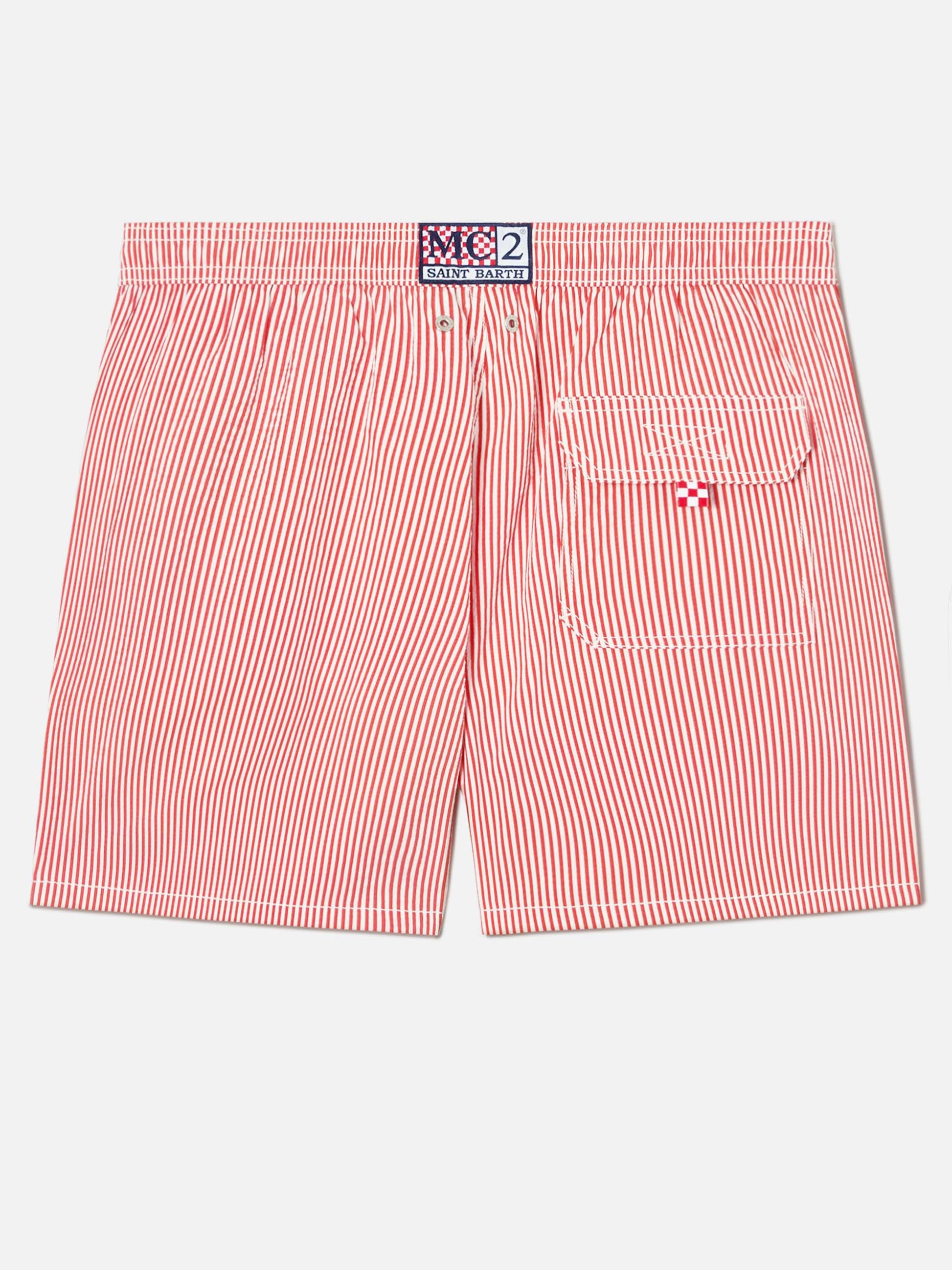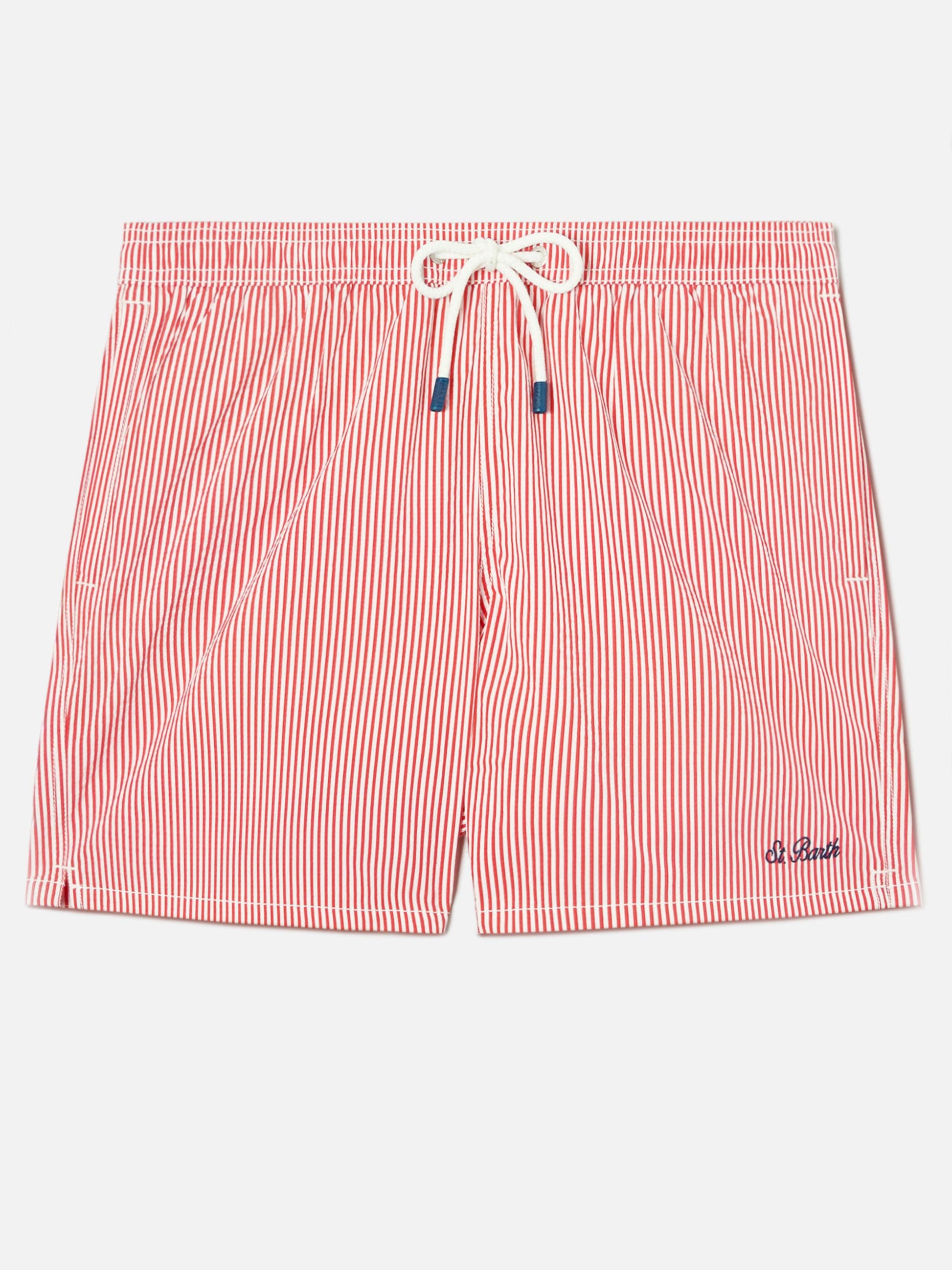 Patmos seersucker striped swim shorts in red and white