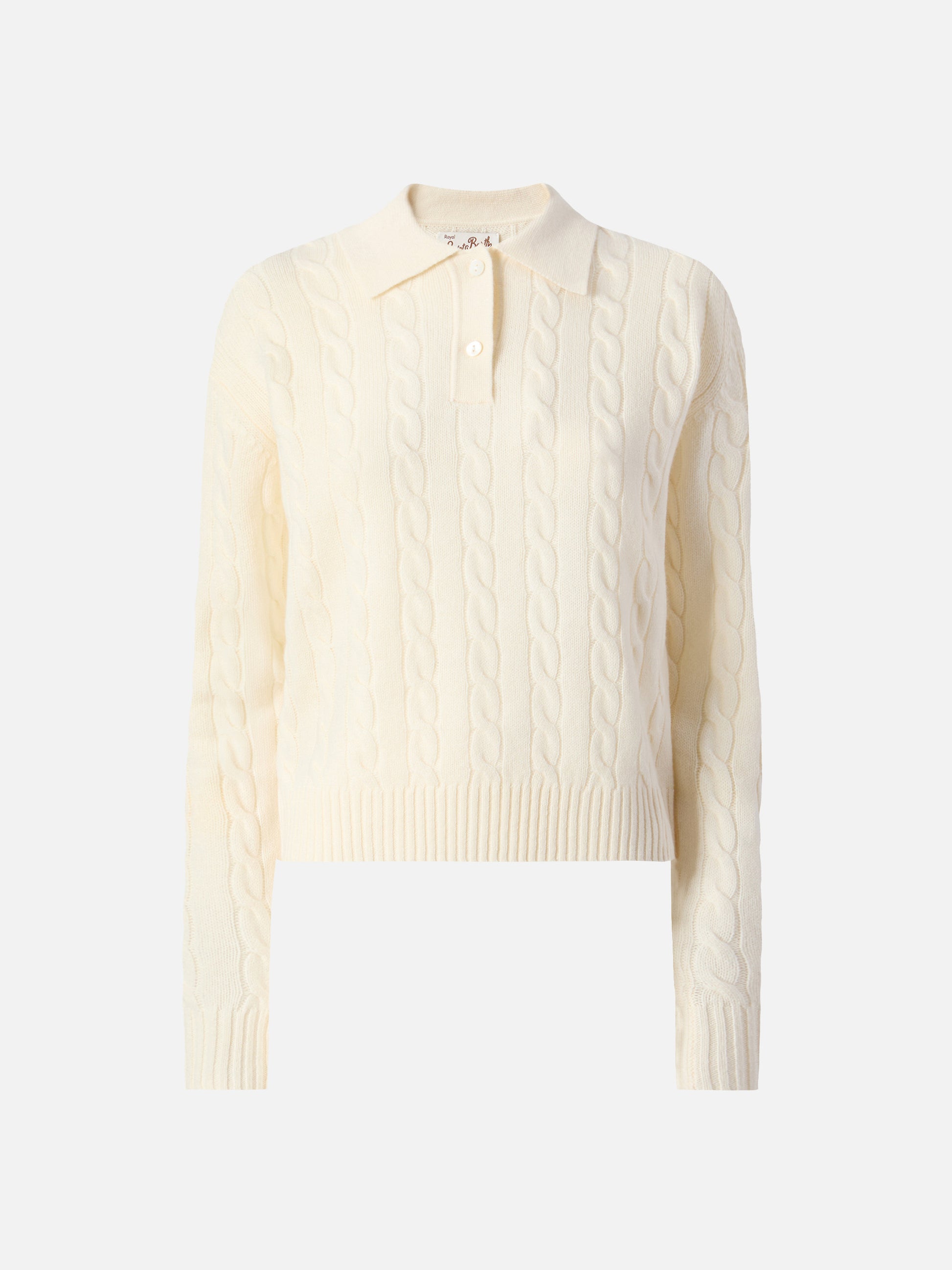 Savoy soft-touch cable-knit merino wool polo sweater in white