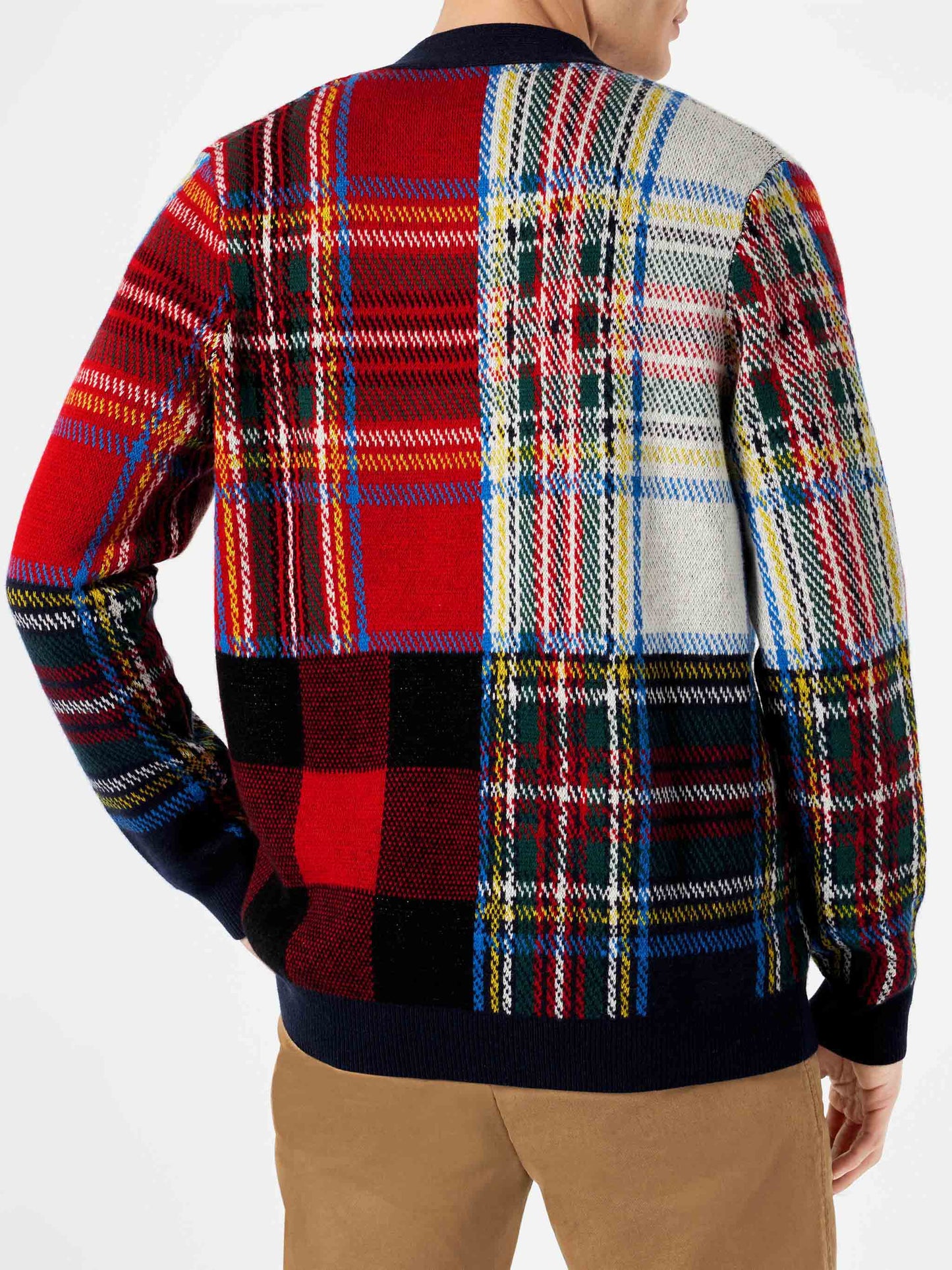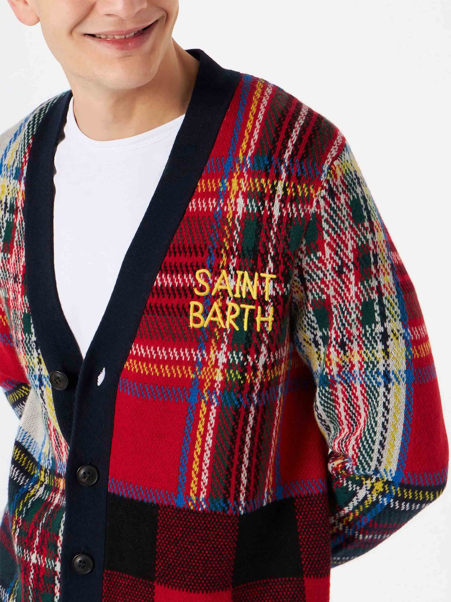 Man tartan knitted cardigan with Saint Barth embroidery