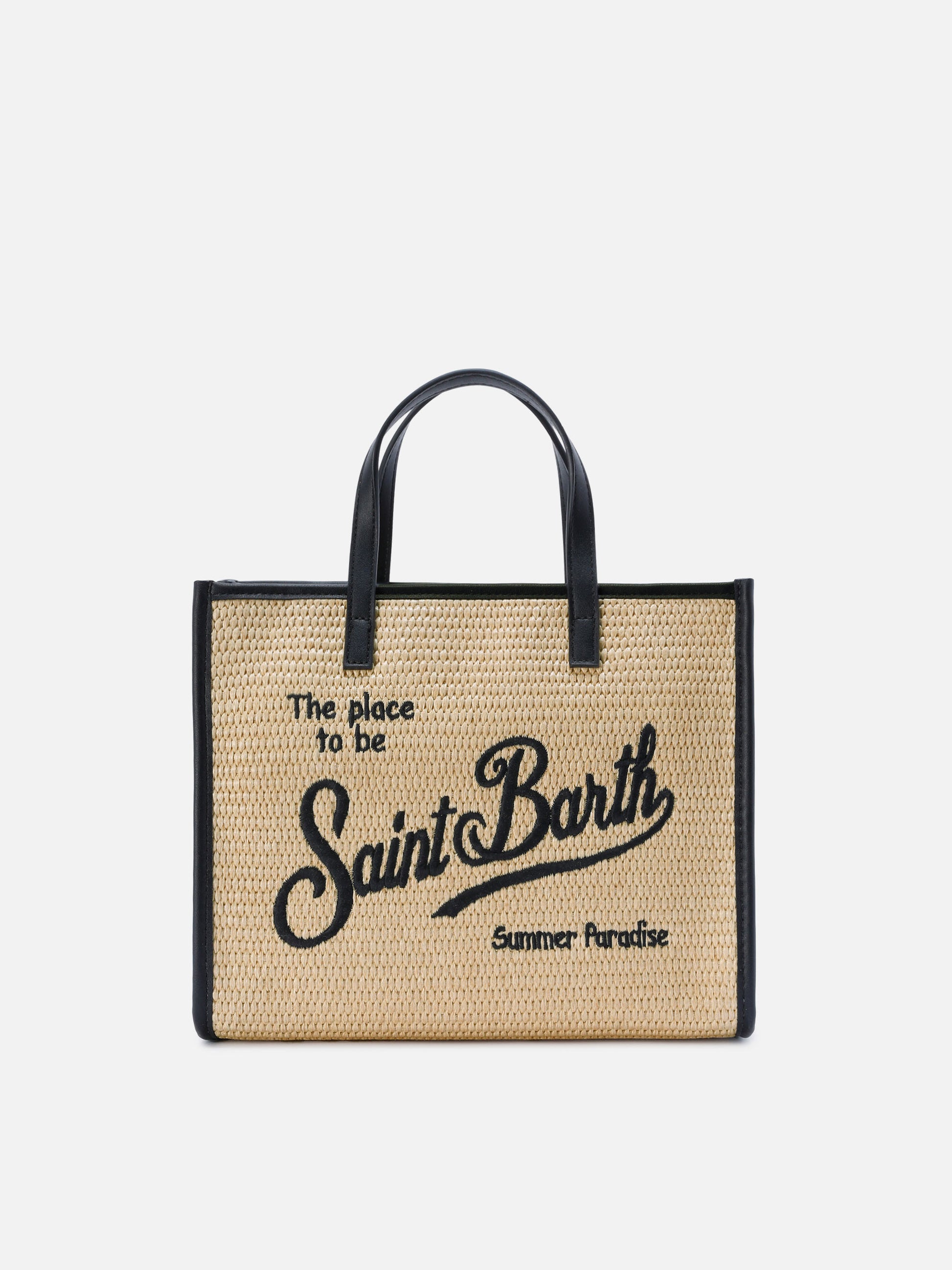Vivian medium straw effect bag with black embroidered logo