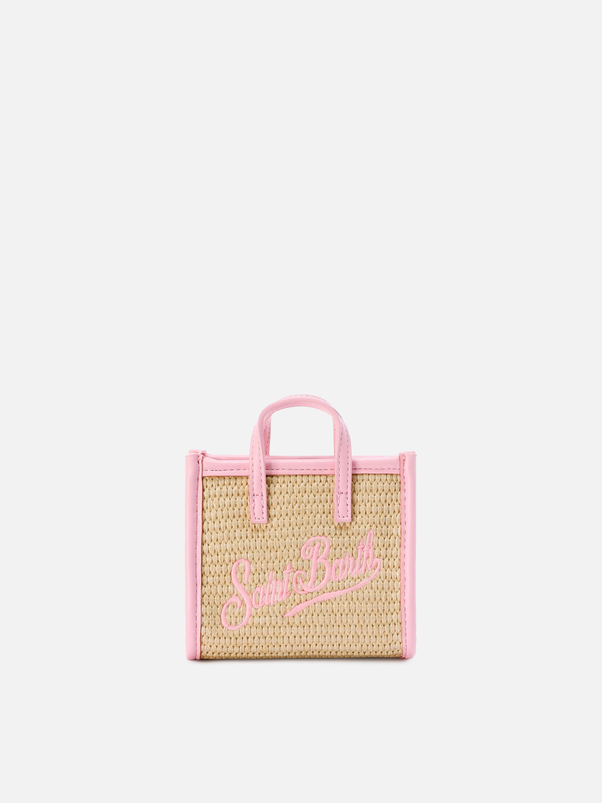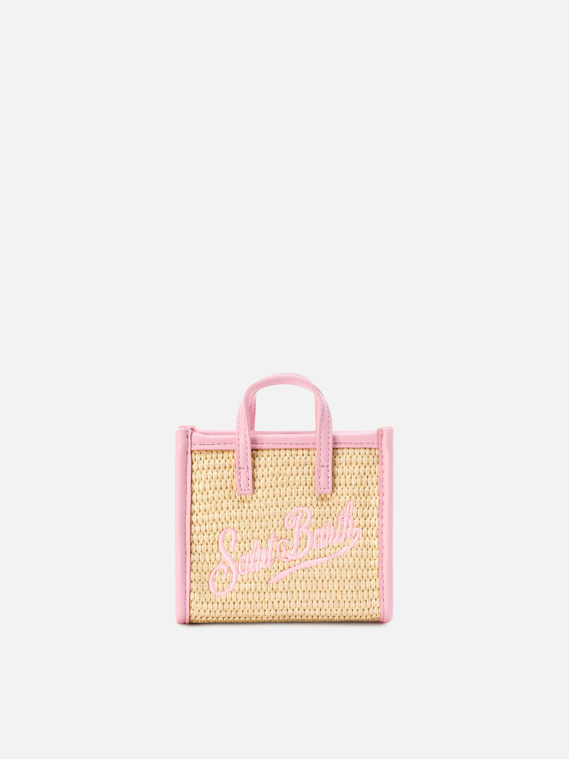 Vivian micro raffia effect bag with pink embroidered logo