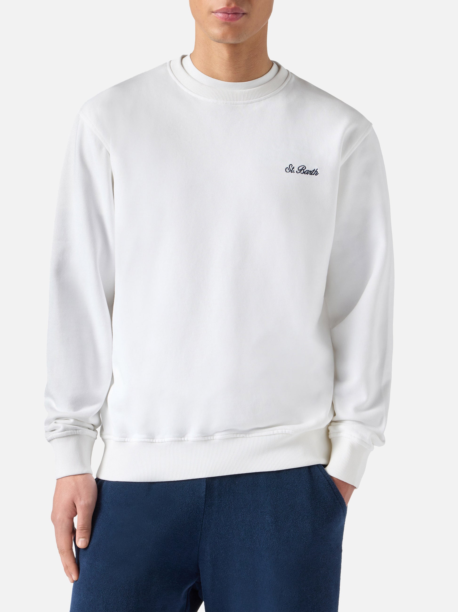 White Ponza sweatshirt with contrasting St. Barth embroidery