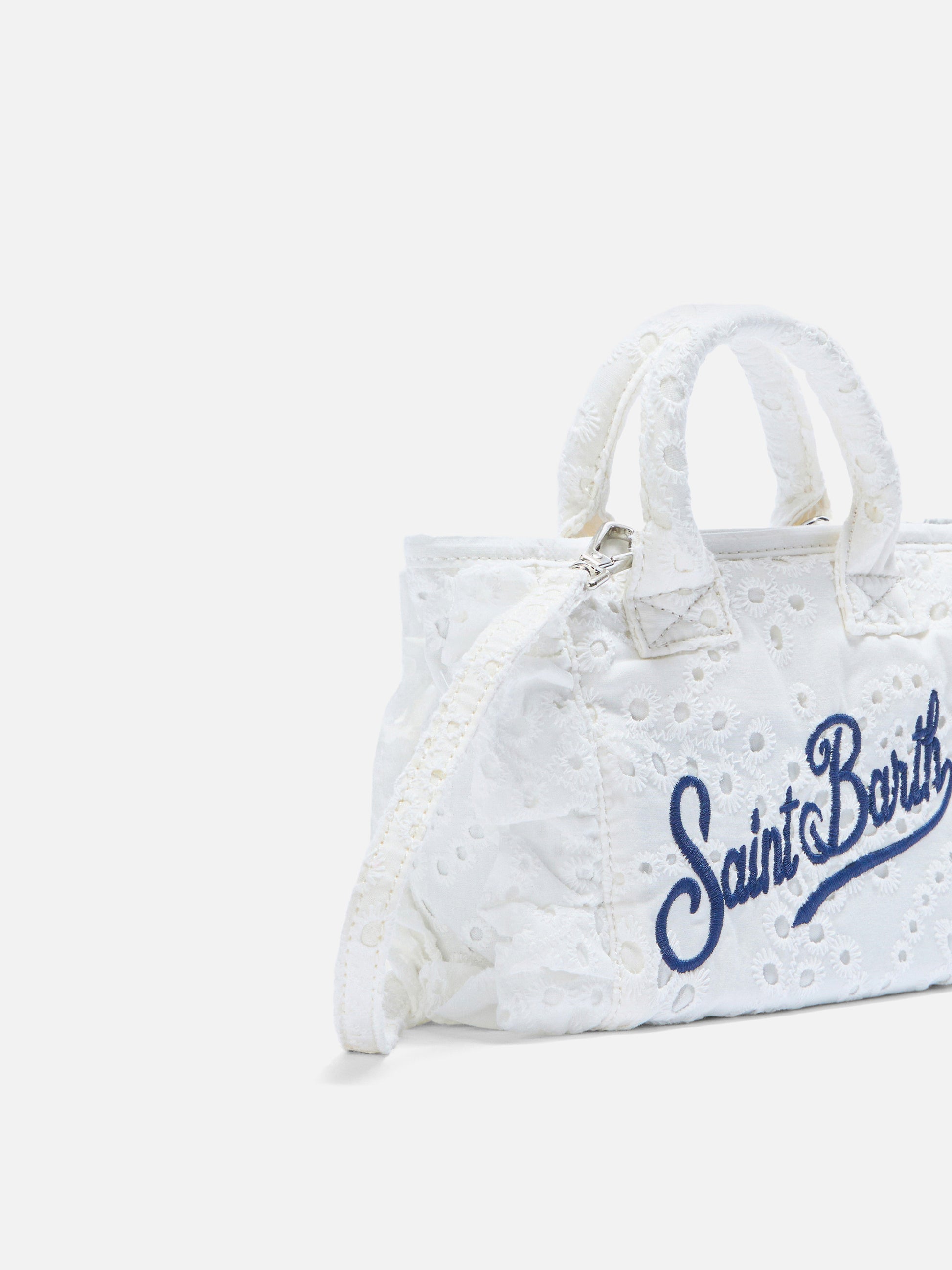 White Vanity mini volant bag in broderie anglaise cotton