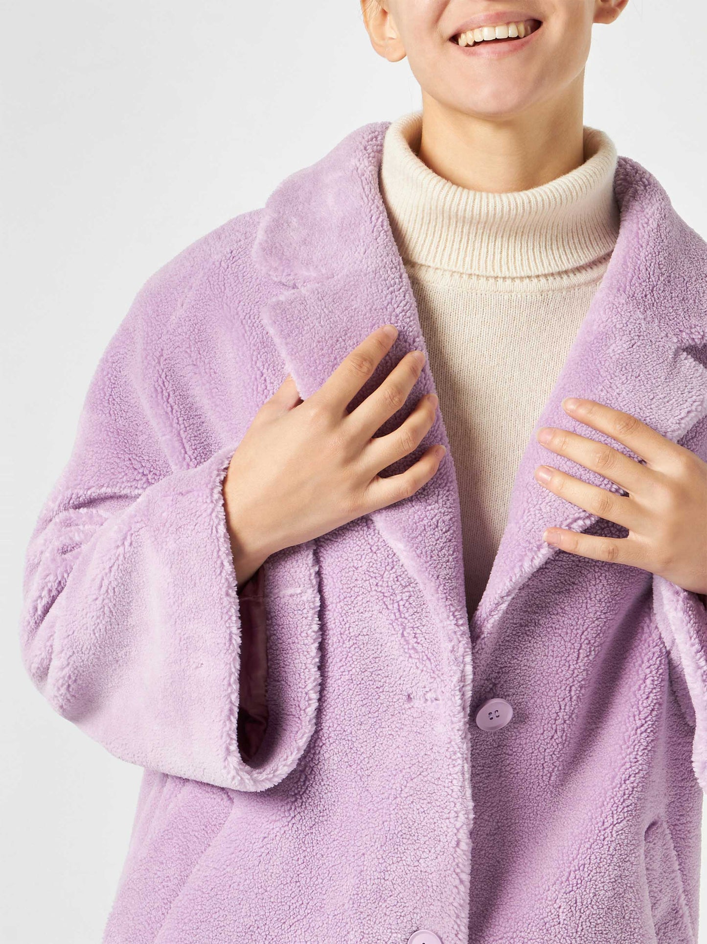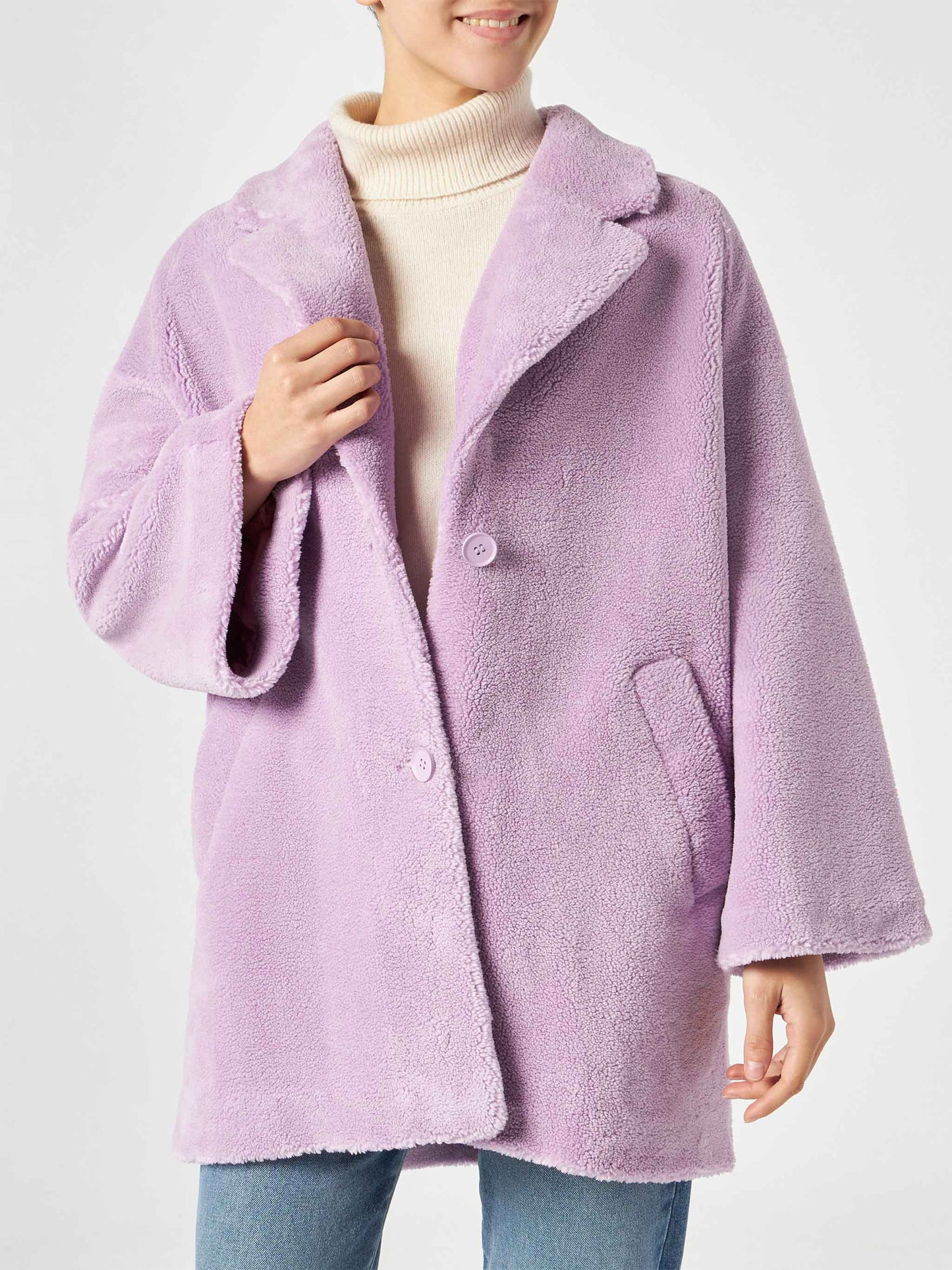 Woman coat lilac teddy fabric