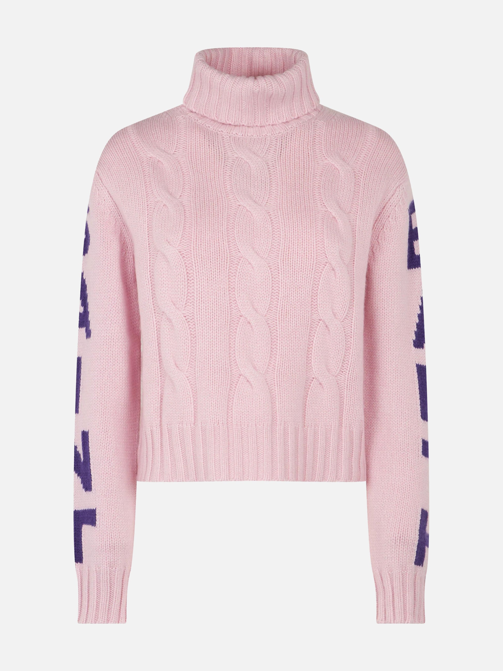 Woman turtleneck braided sweater with Saint Barth jacquard